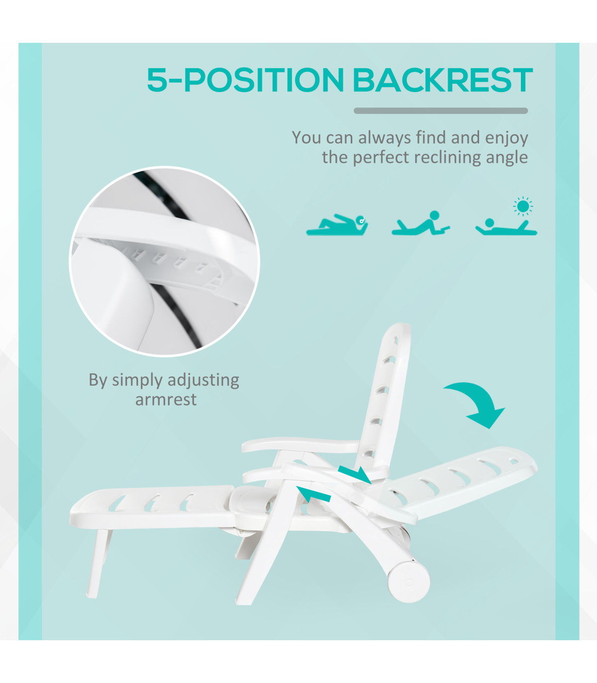 ● Backrest with 5 adjustable positions provide back support for best comfort