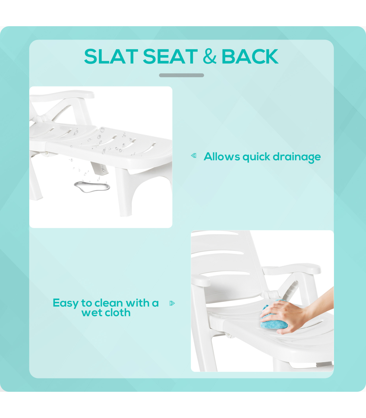 ● Slat seat and back for quick drainage in rainy days
