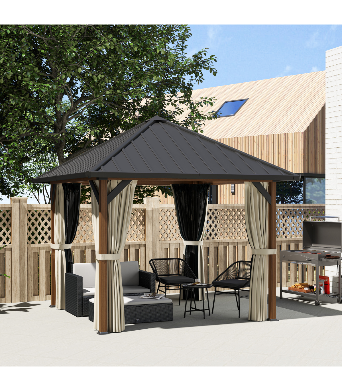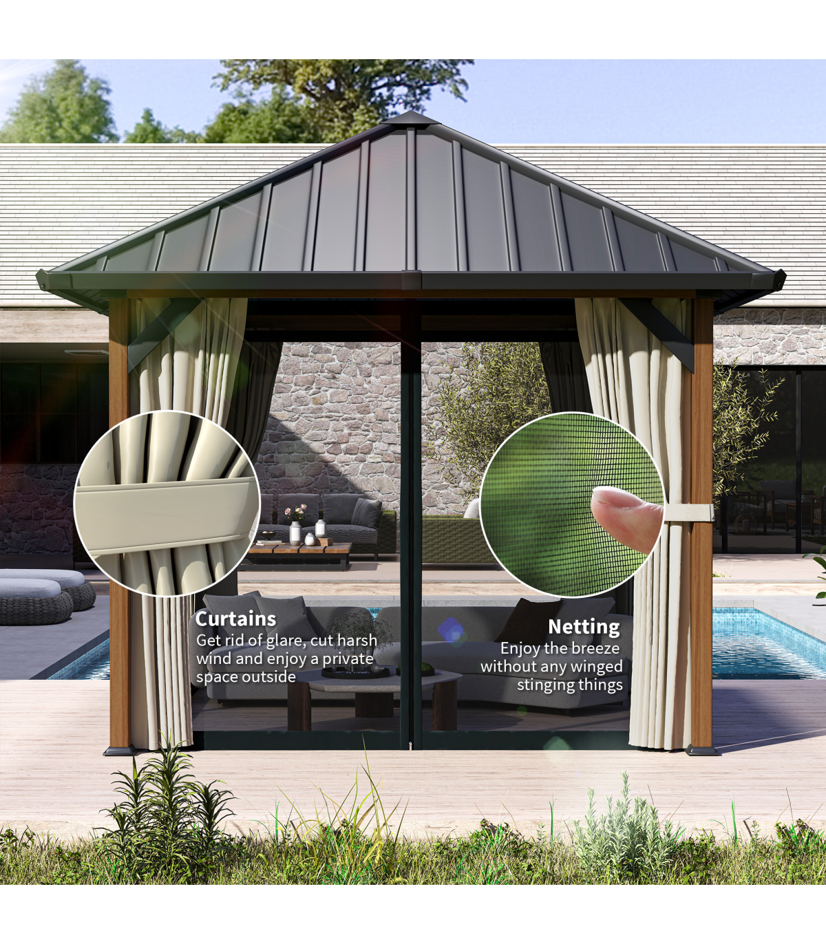 ● Curtains and netting provide privacy and insect protection
