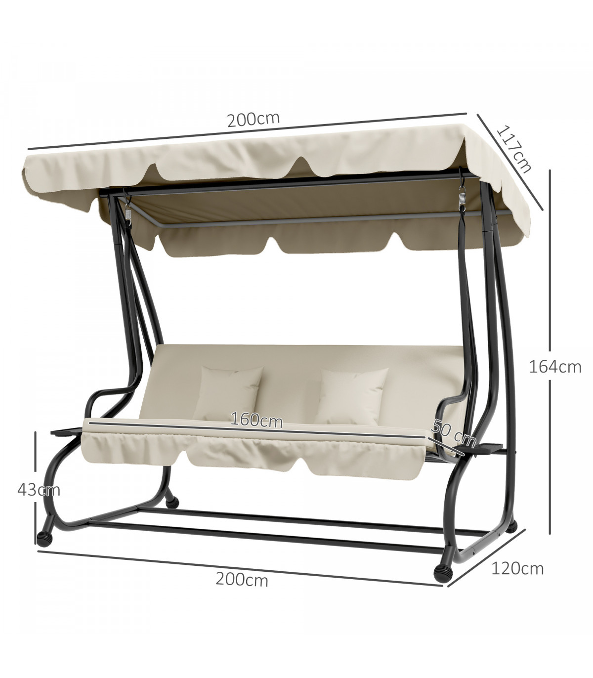 ● Overall dimensions: 200L x 120W x 164H cm