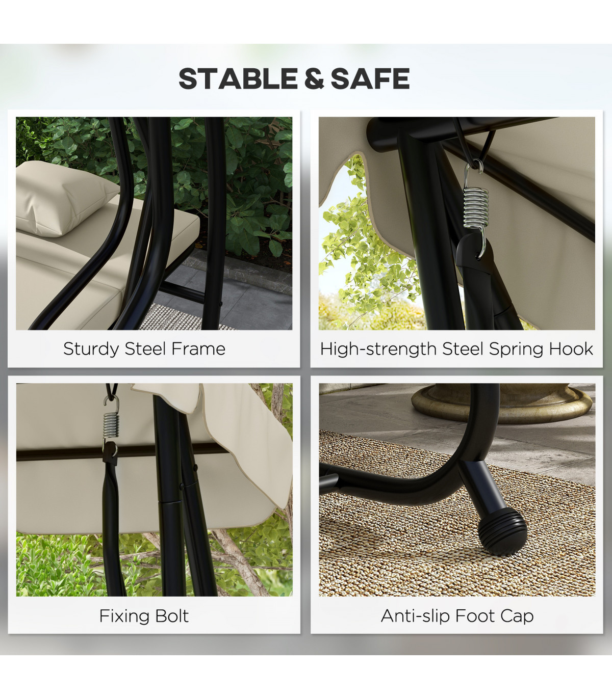 ● Strong powder coated steel frame. Suitable for outdoor use