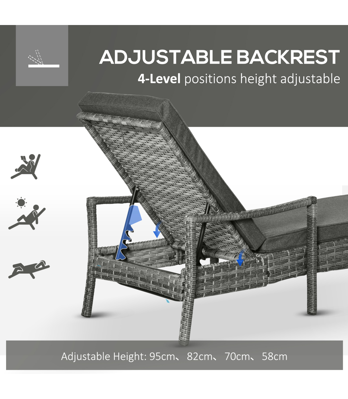 This outdoor rattan single lounge from Outsunny is stylish and can fit with any backyard decor. Constructed by all hand woven dual PE rattan wicker and metal frame for durability. 4-level adjustable backrest, which can match your body provide relaxing and sleeping modes. Soft padded cotton for optimal comfort and relaxation. Premium armrest add extra comfort. Ensuring you will feel relaxed while sunbathing with our outdoor furniture.