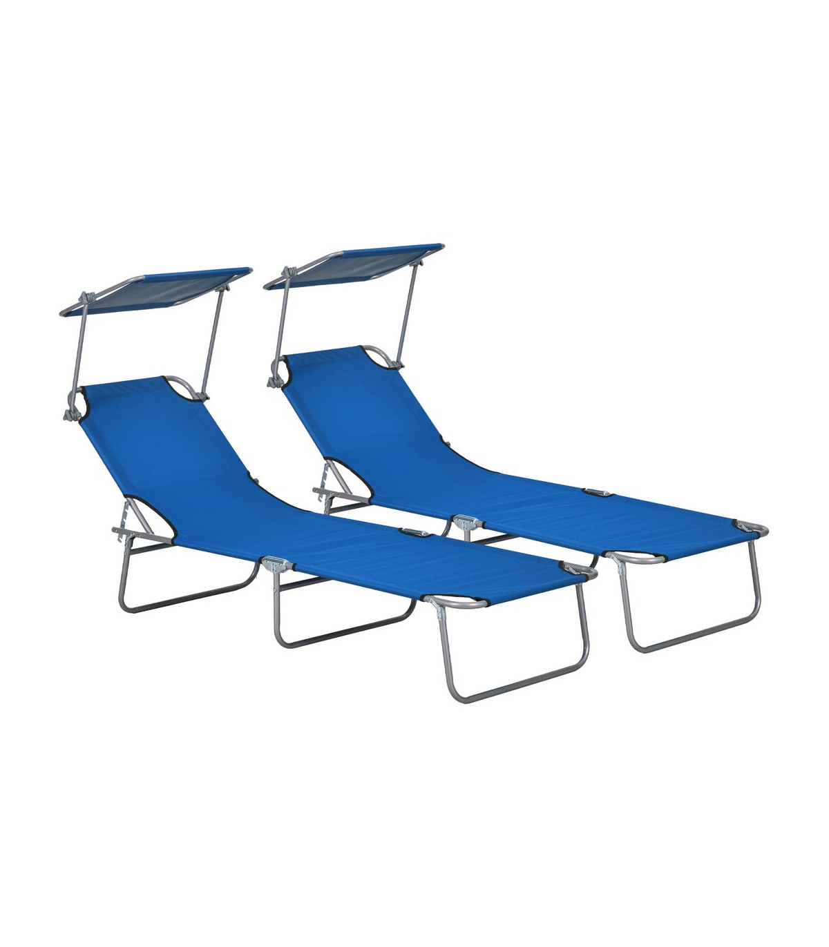 Outsunny Folding Sun Lounger Set of 2 with Sunshade Adjustable Backrest Blue