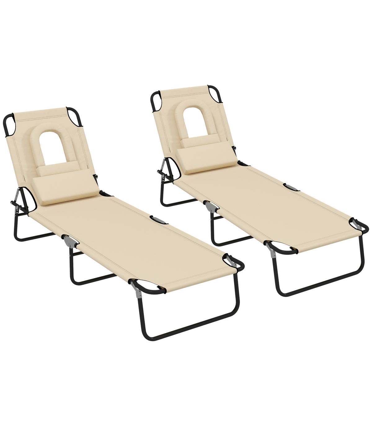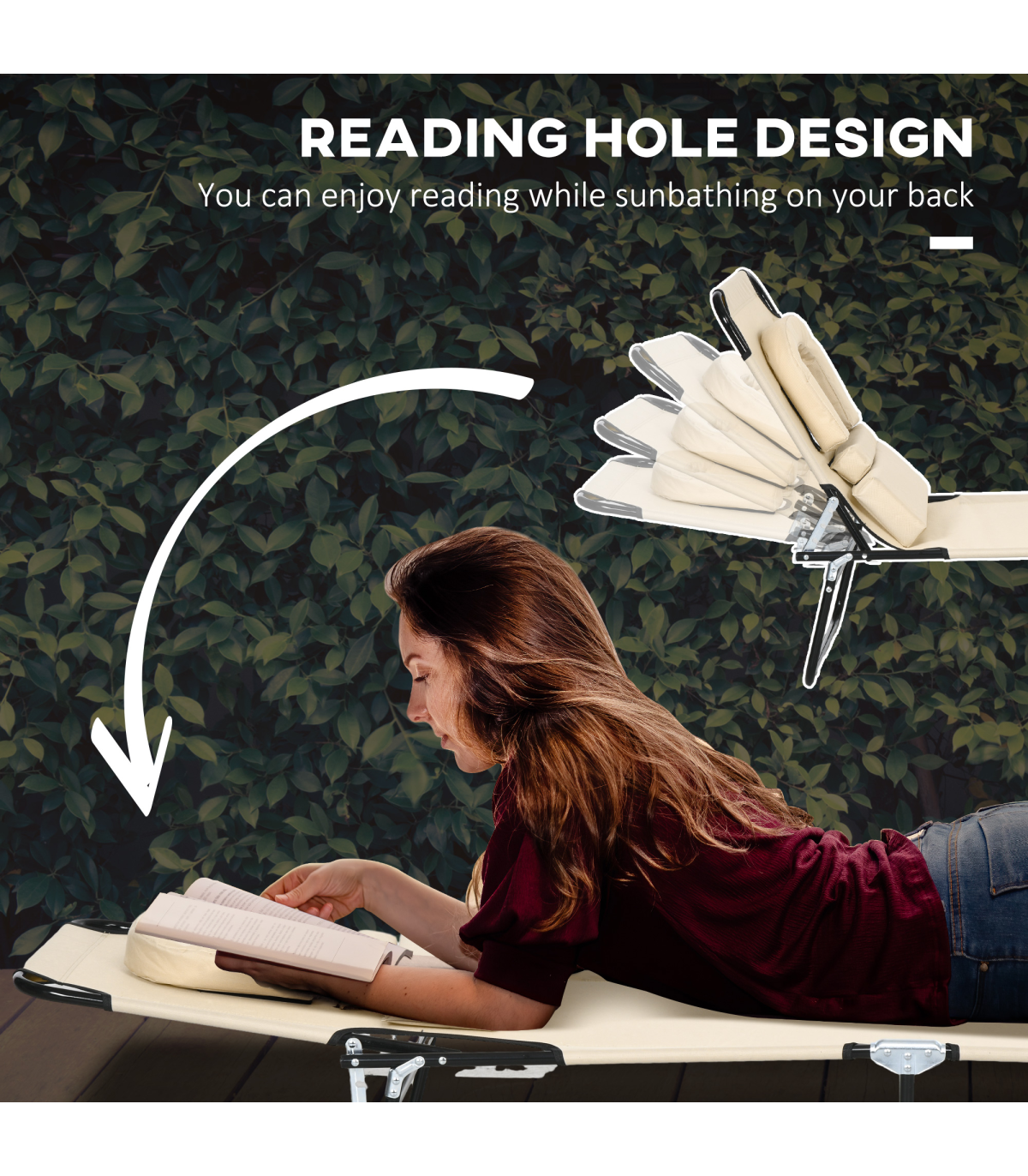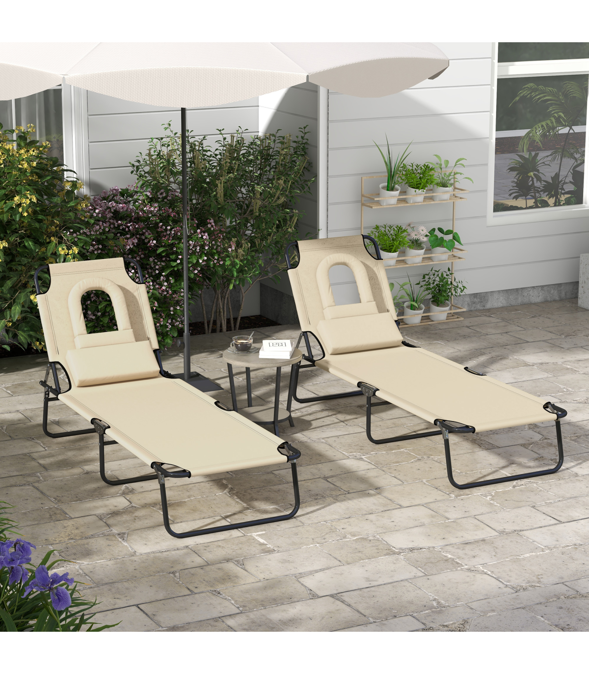 Outsunny Folding Sun Lounger Set of 2 Reclining Chair with Reading Hole Sand