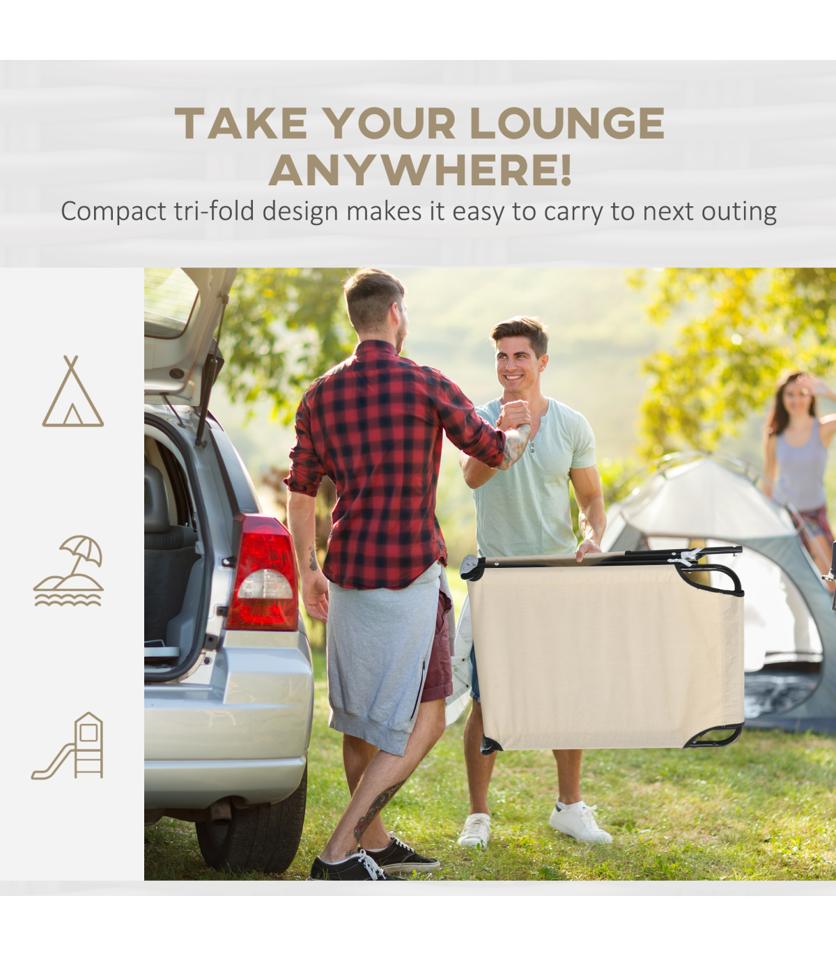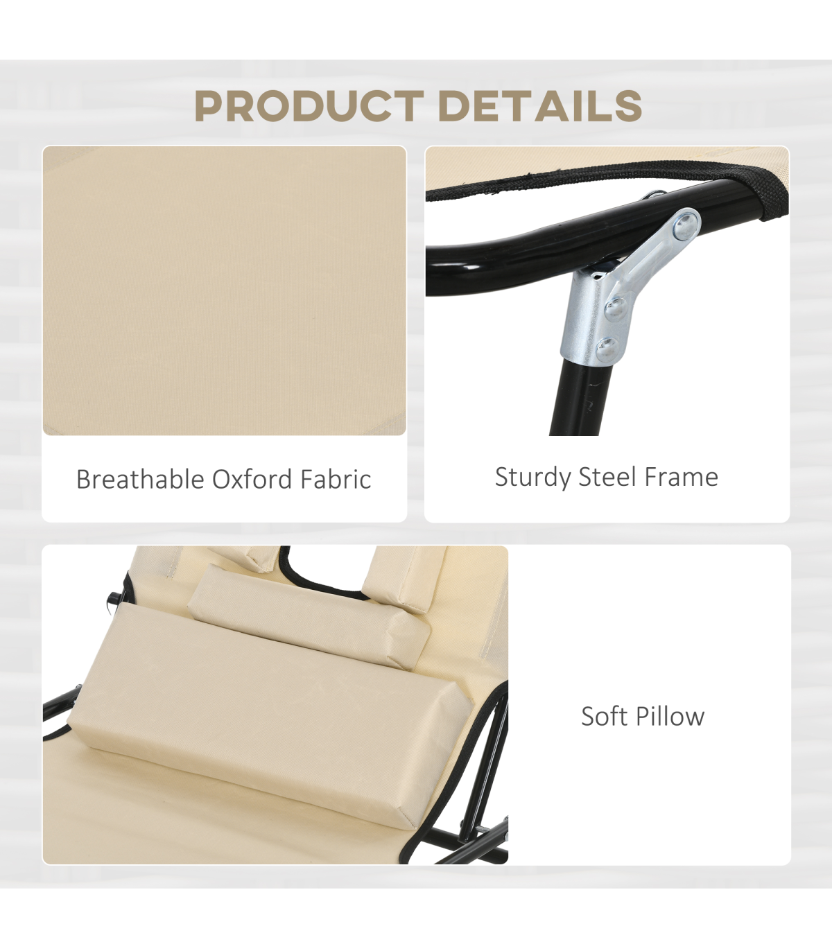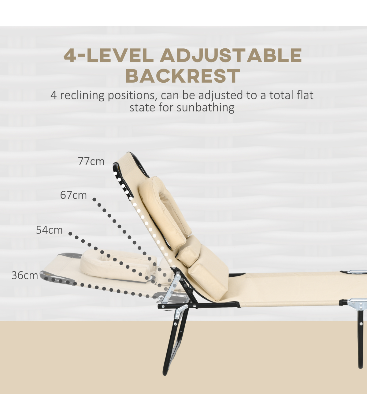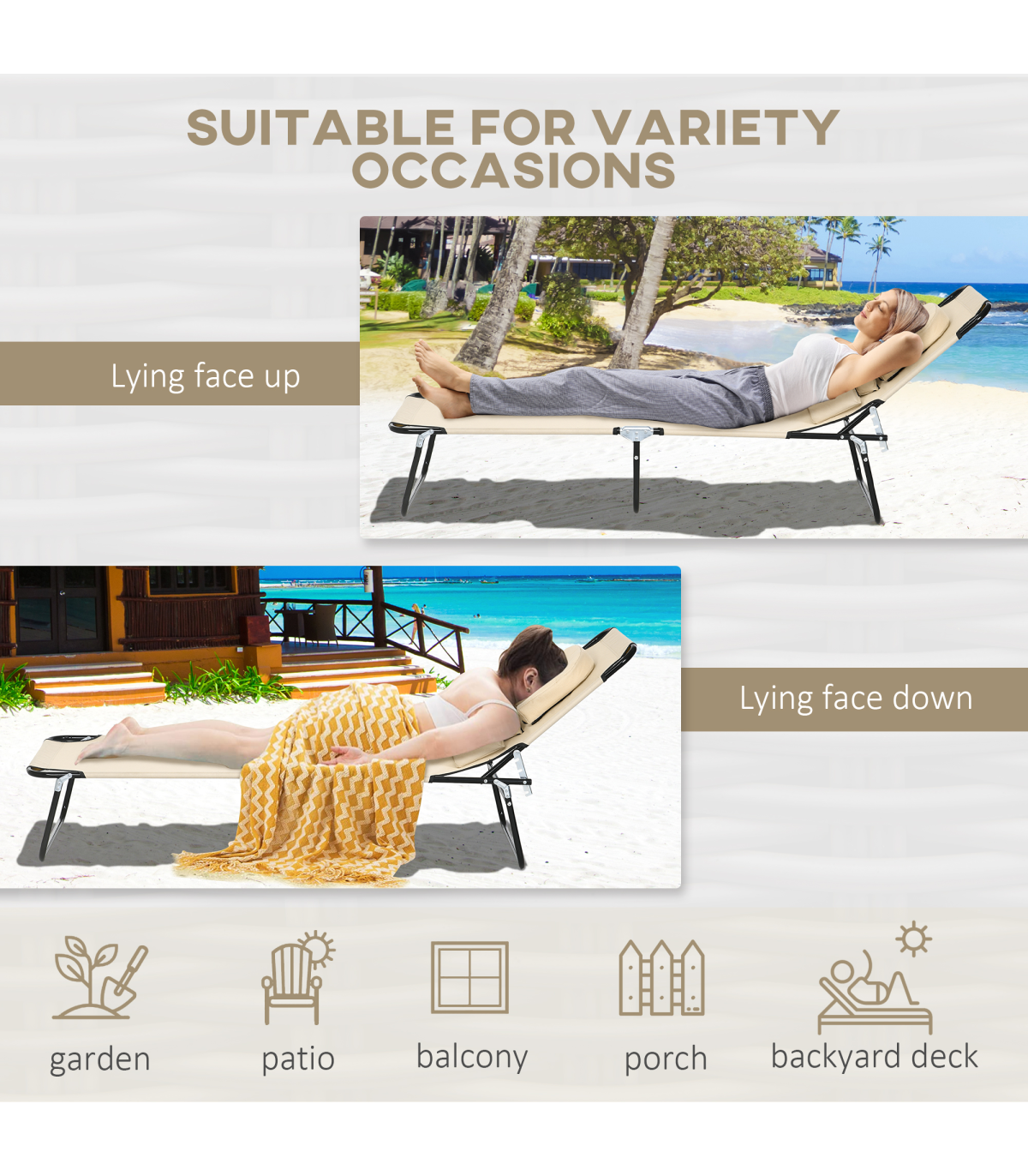 Outsunny Folding Sun Lounger Set of 2 Reclining Chair with Reading Hole Sand