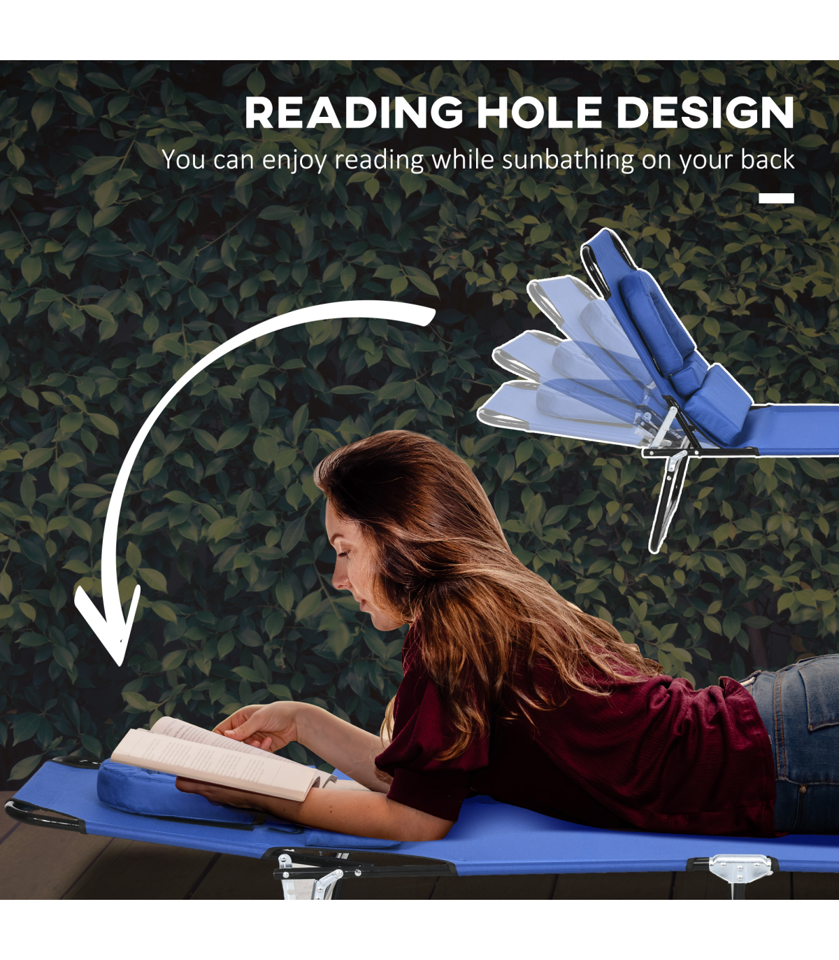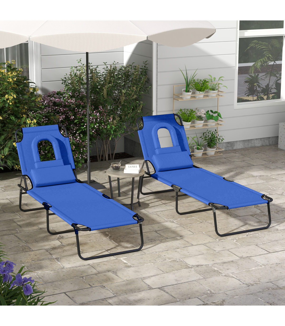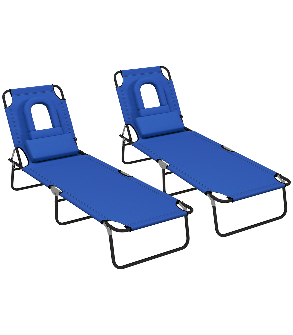 Outsunny Folding Sun Lounger Set of 2 Reclining Chair with Reading Hole Blue