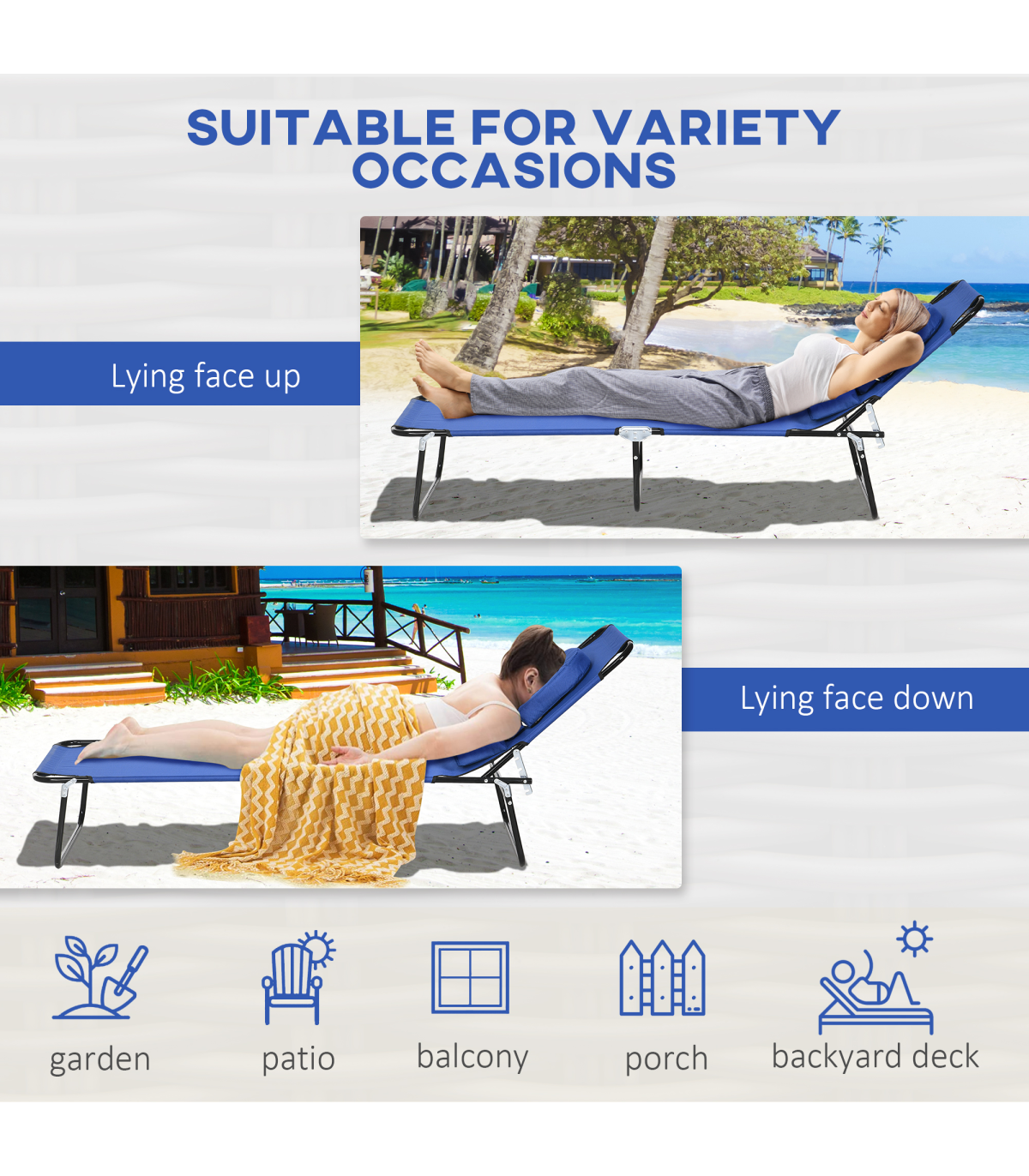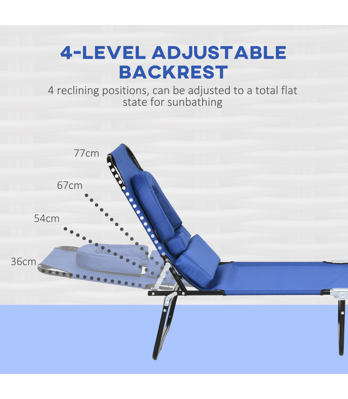 A cool update on the classic sun lounger - go for this massage-style garden chair from Outsunny. The design features a padded head hole at the front, which allows you to comfortably rest your face in: perfect for when relaxing on your front - or even reading a book! The metal frame supports up to 120kg. The back is adjustable to four positions - it's easy to set and lock to a position you like best. So just sit back and relax.