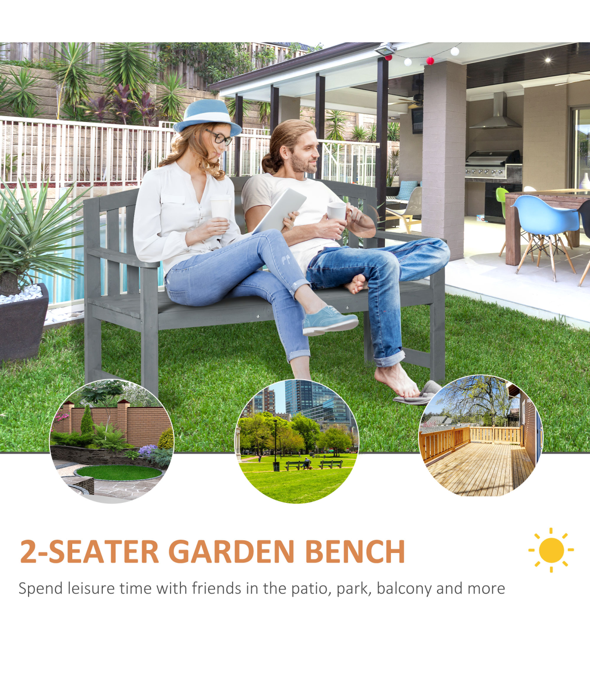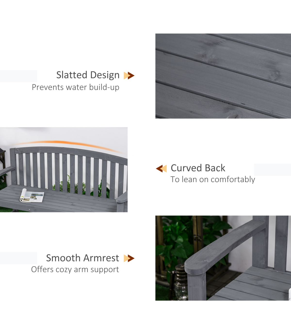 Outsunny 2 Person Garden Bench Wooden Outdoor Furniture with Armrest Grey