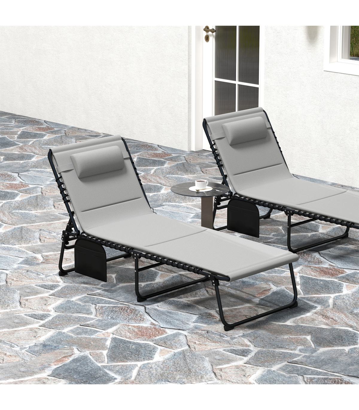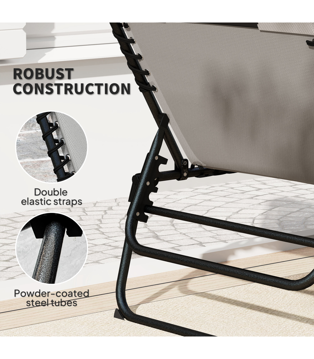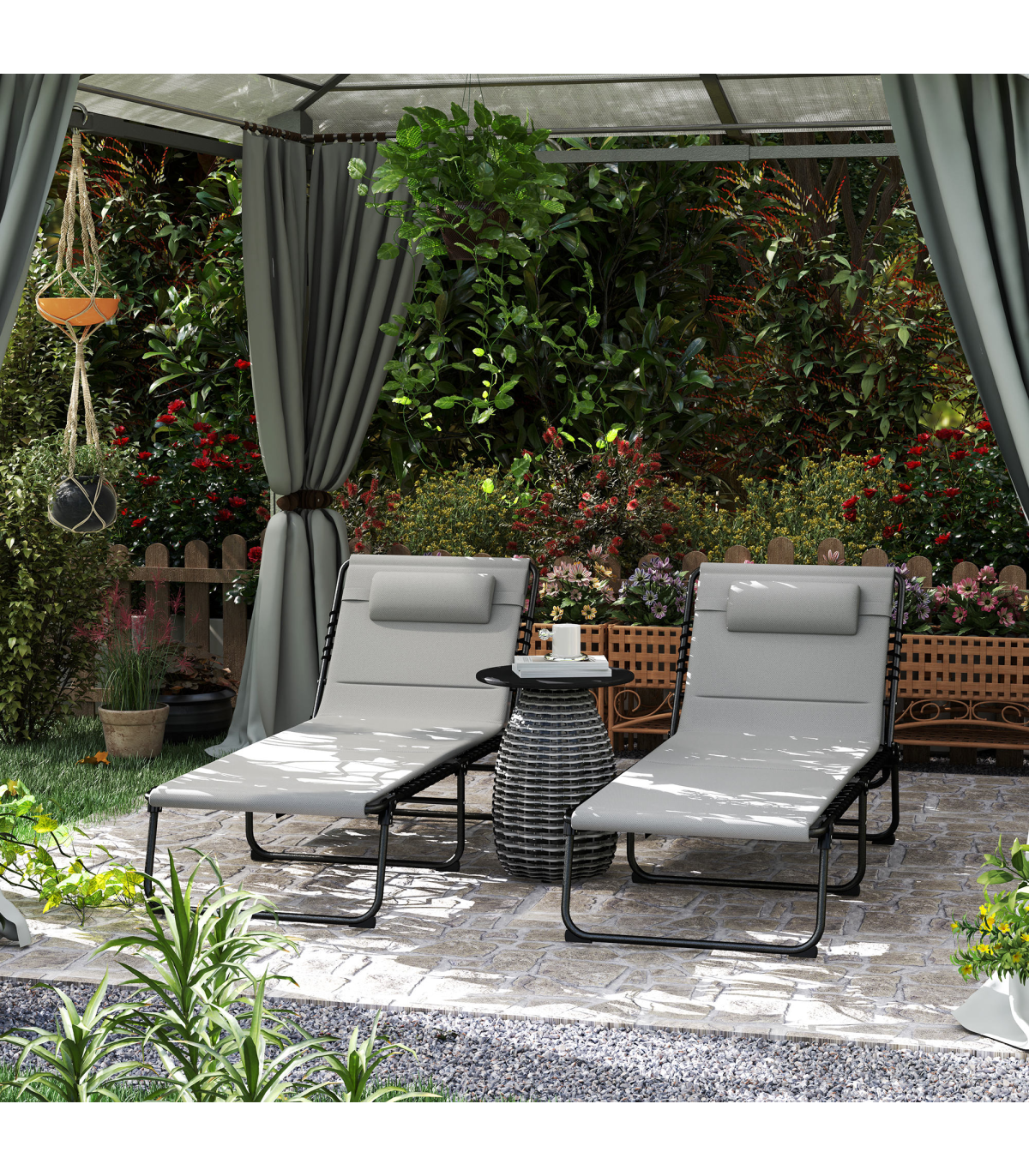 Outsunny Folding Sun Loungers Set of 2, Reclining Sun Bed, Light Grey