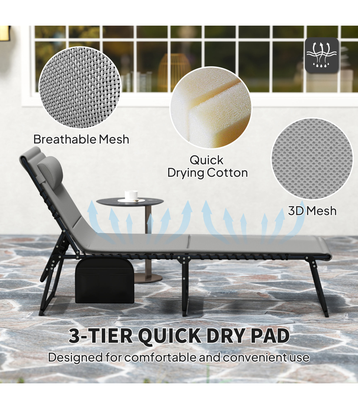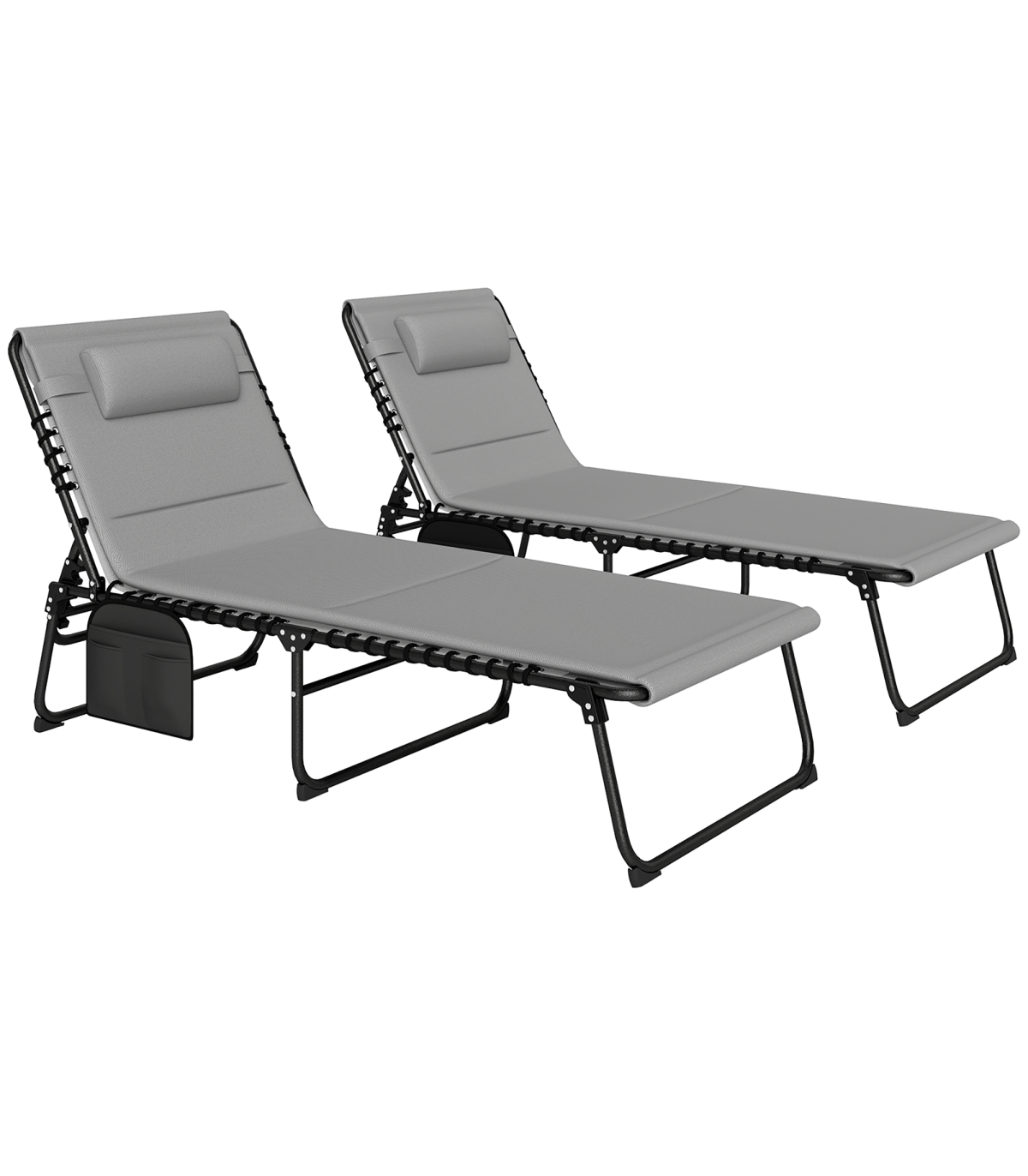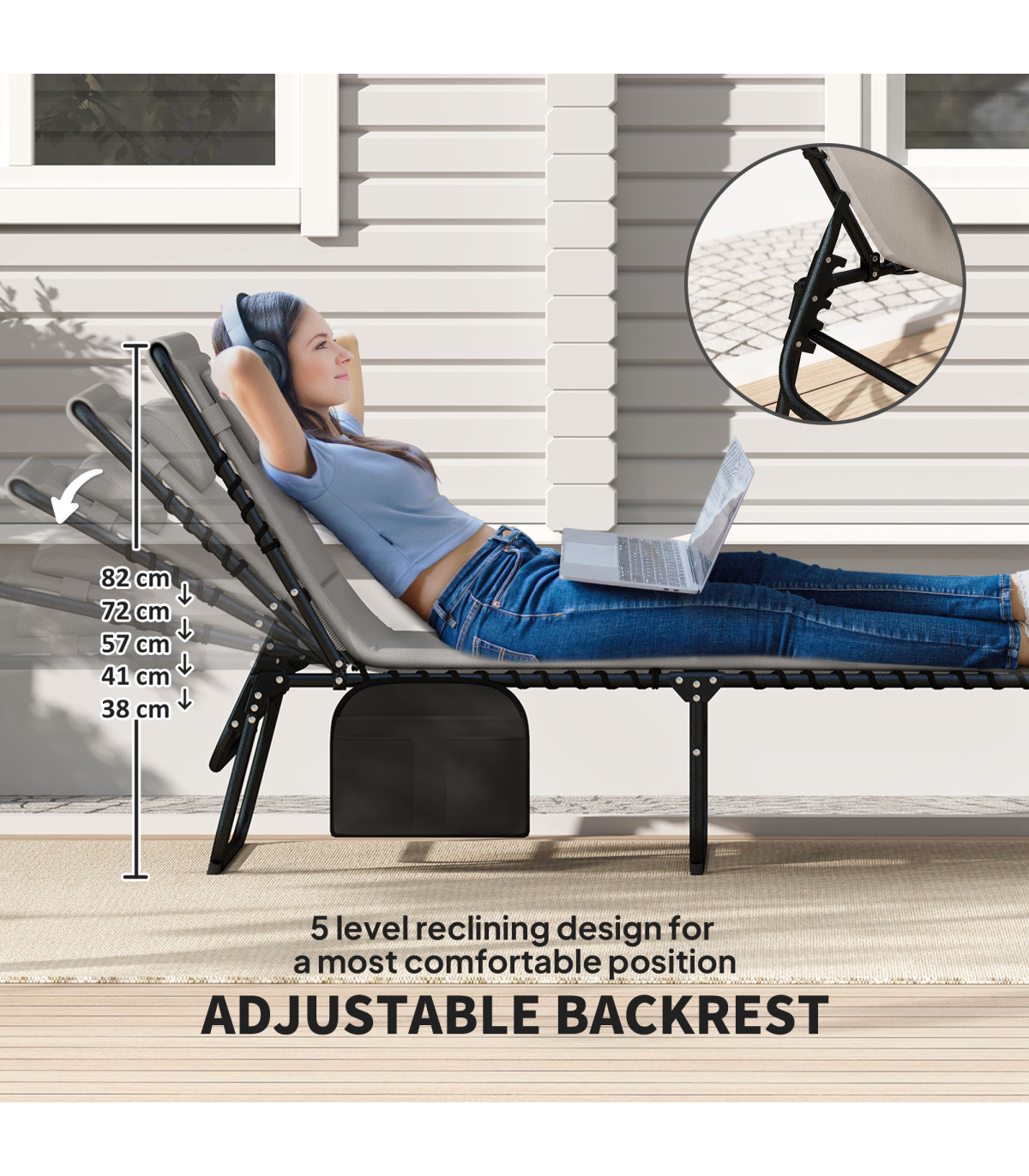 Outsunny Folding Sun Loungers Set of 2, Reclining Sun Bed, Light Grey
