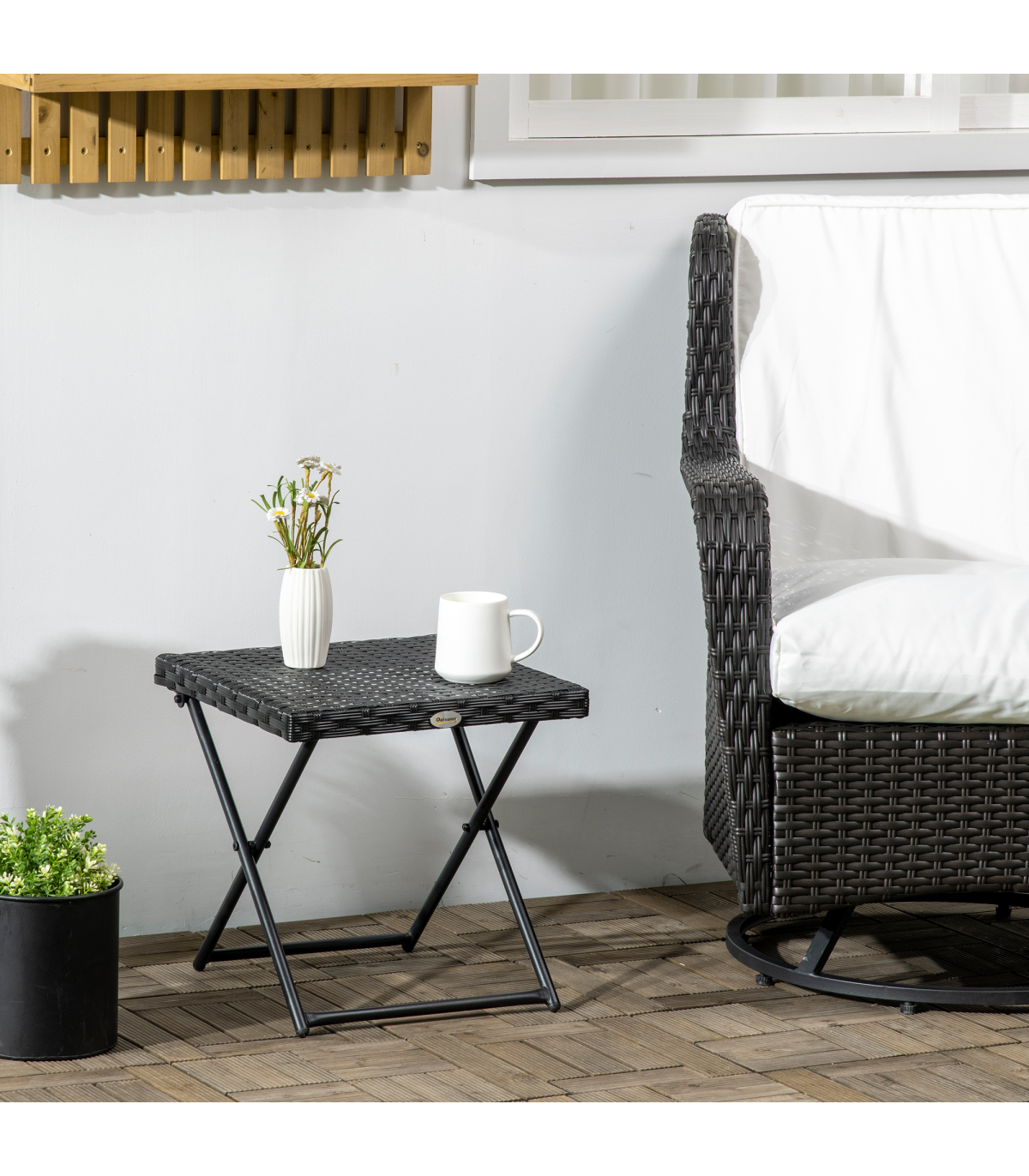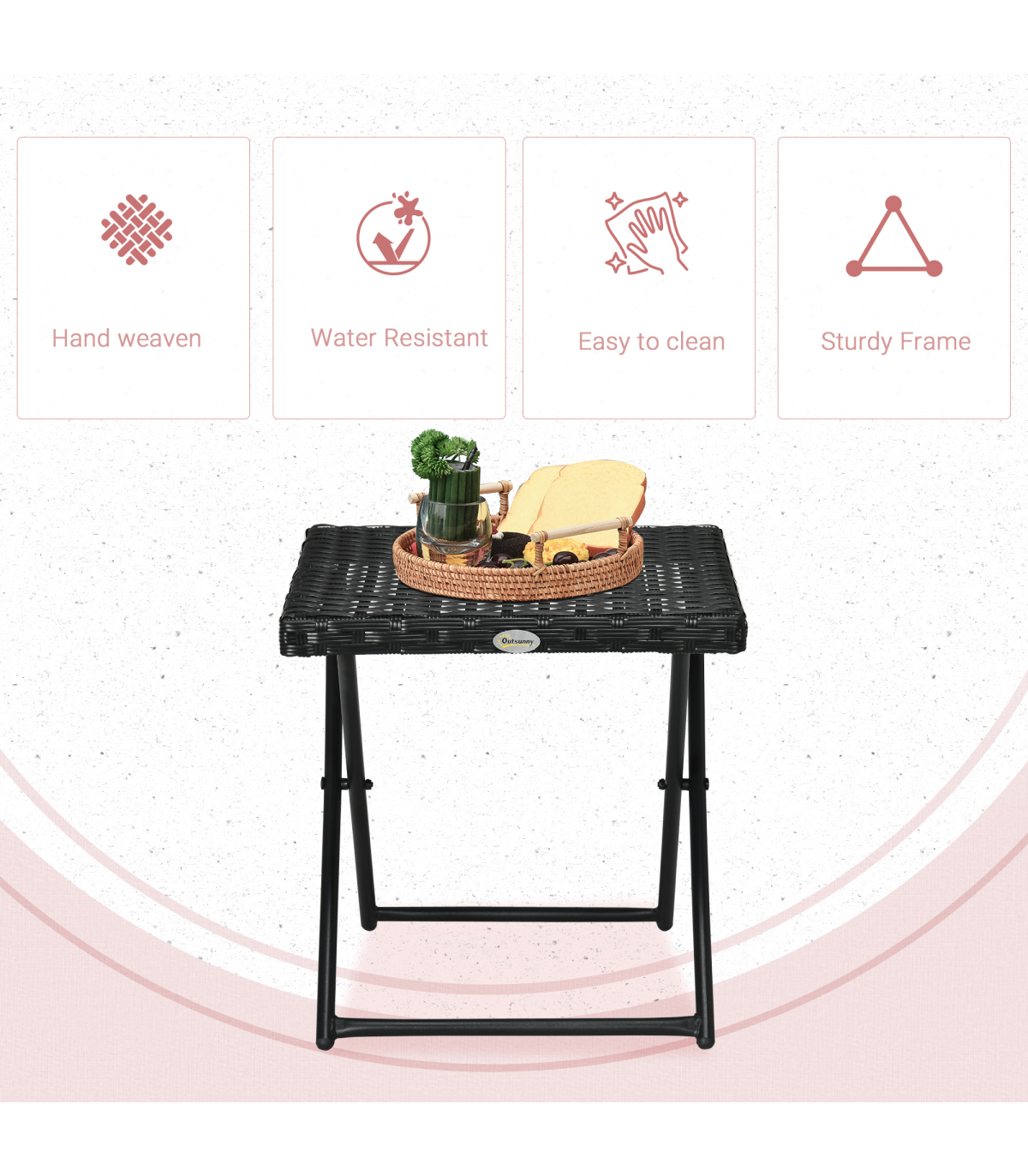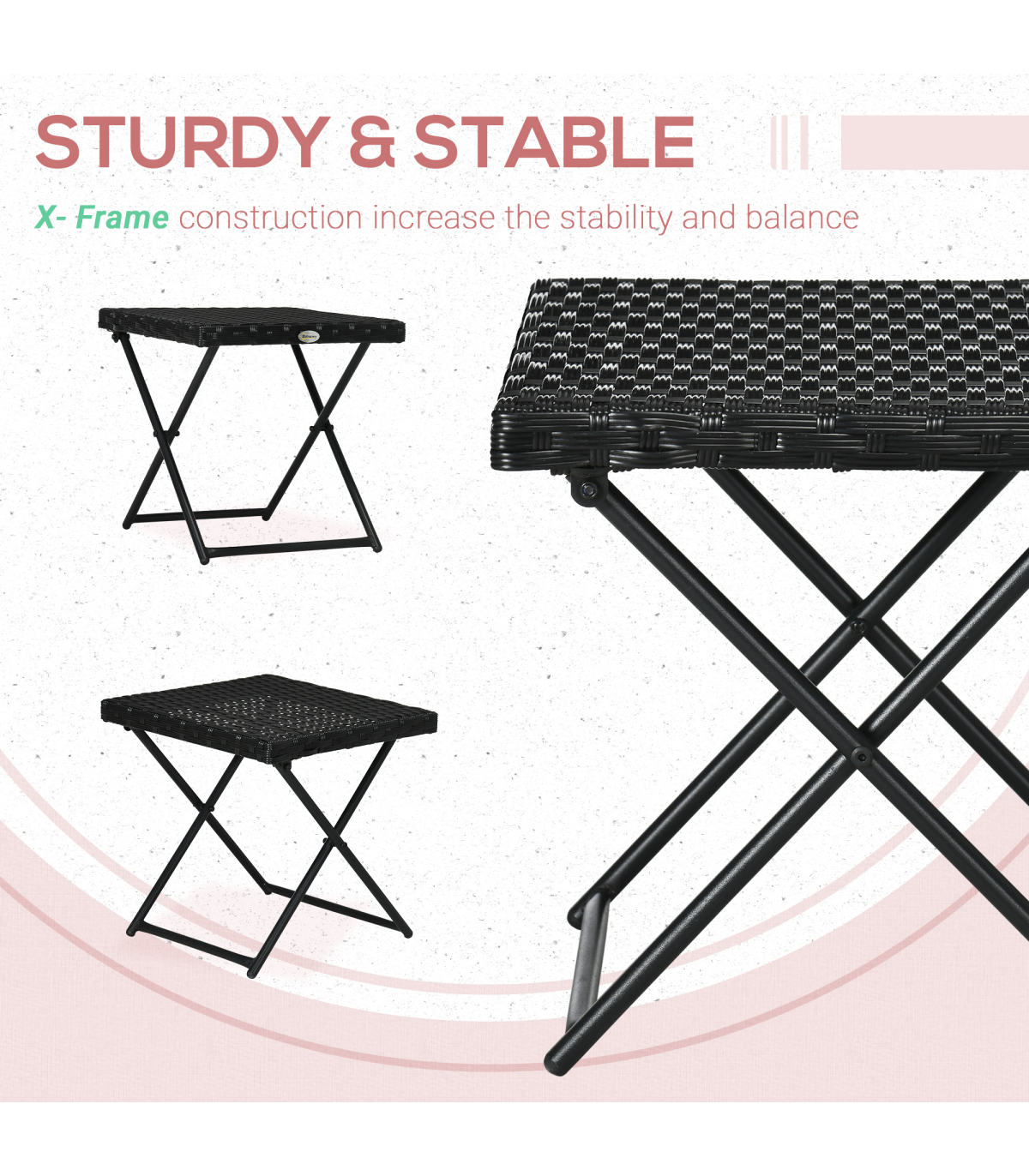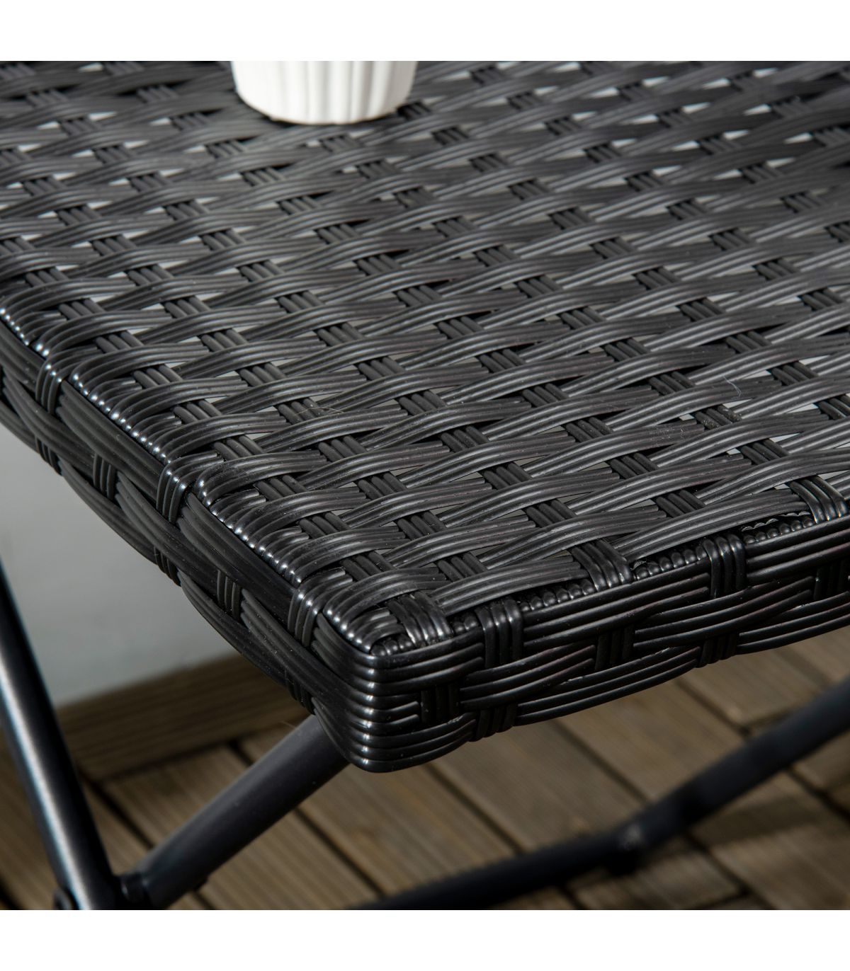 ADDS MORE SPACE: Ideal for when family and friends come over.PE RATTAN TOP: High quality and weather resistant, can be used all year round.STURDY: Powder coated steel frame to ensure durability for years to come.FOLDABLE: Easy to set-up and store away when not needed.DIMENSIONS: 40H x 40L x 40Wcm. Folded: 55H x 40L x 6Wcm. Maximum weight capacity: 30kg. NO ASSEMBLY REQUIRED.
