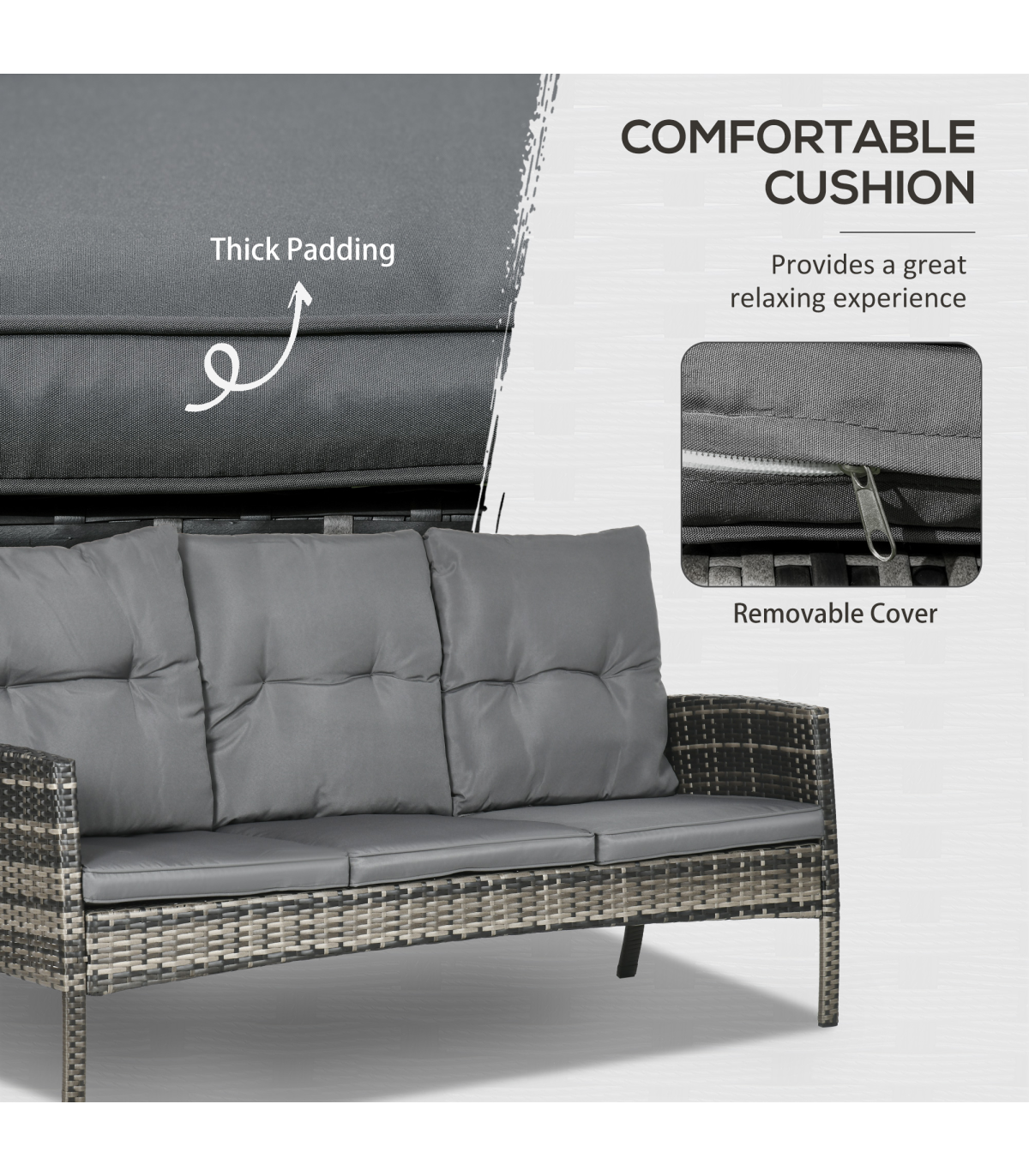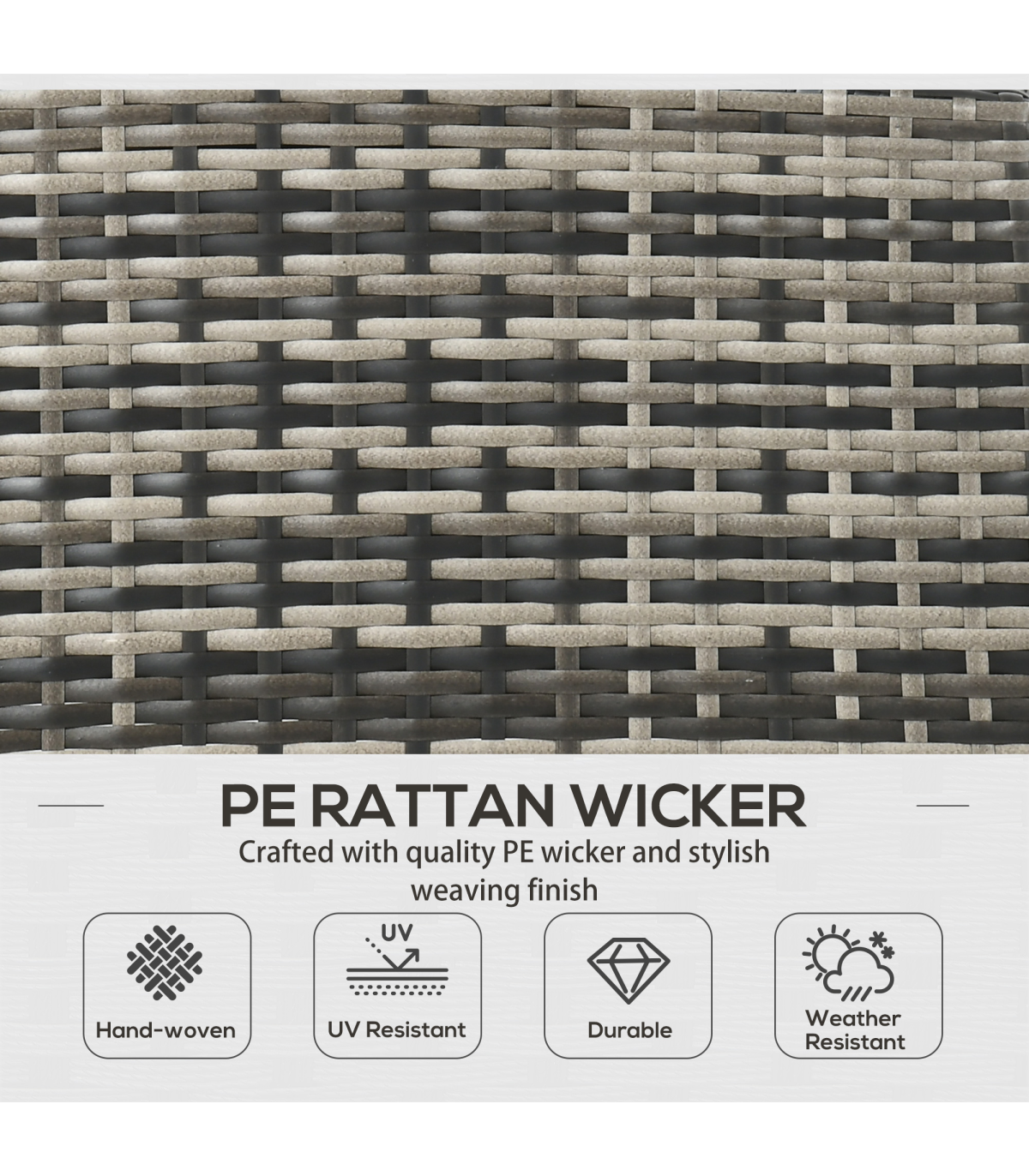 Your best company to gather round under the sun - say thanks to this Outsunny rattan garden sofa set. Each piece has a strong, powder coated steel frame, which is wrapped with plastic wicker - a stylish rattan look, which also protects the steel frame. Set comes with two armchairs, two footstools, a three-seater sofa and a matching coffee table. All seats and footstool come with padded cushions for comfort. Note: two people required to build this set.