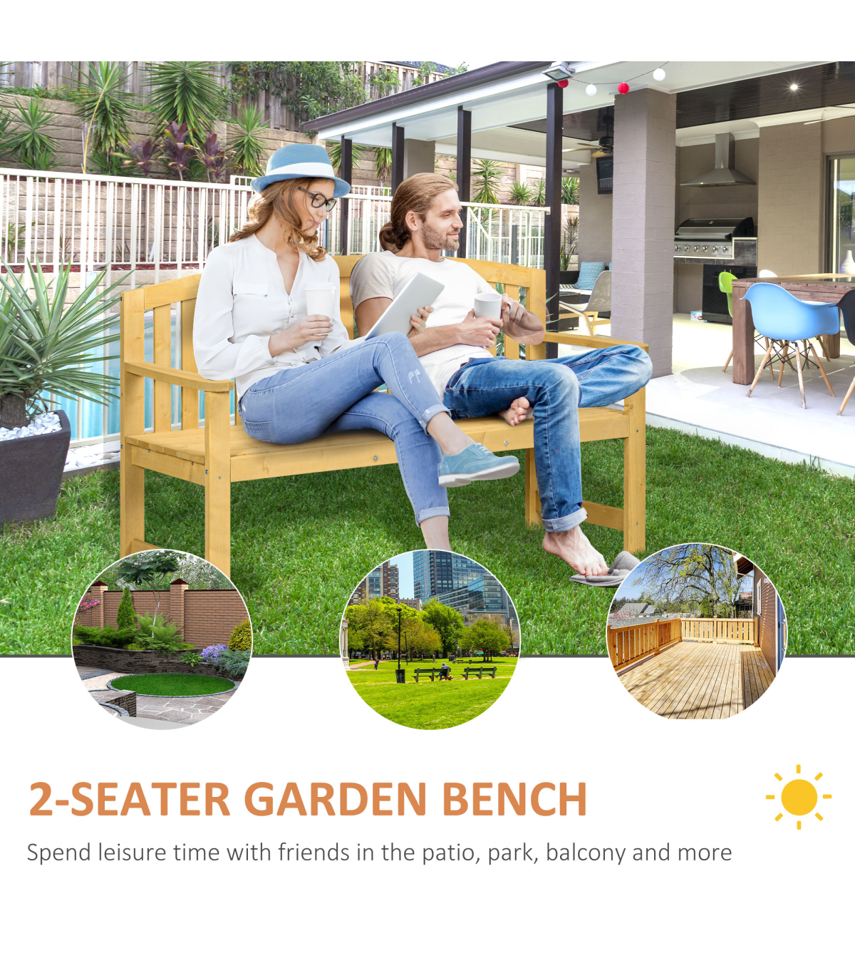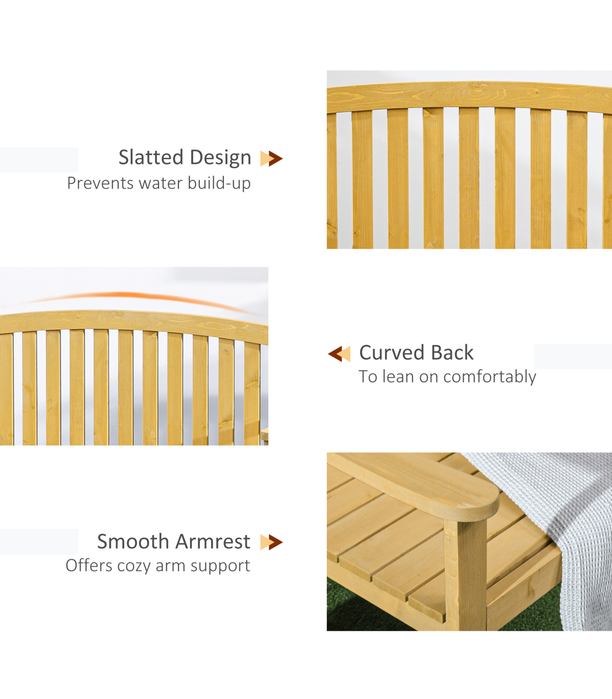 2 Person Garden Bench Wooden Outdoor Furniture with Armrest Orange