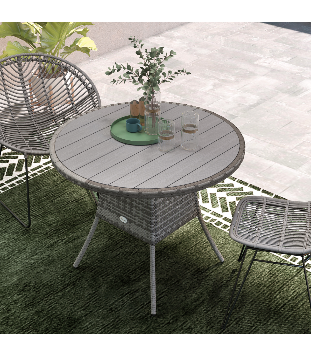 ● Wood-plastic tabletop is stable. Slatted to prevent water build-up