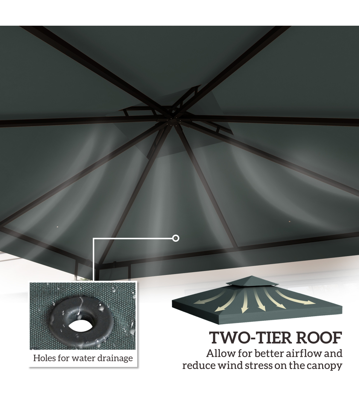● Two-tier roof lets air pass in and out easily