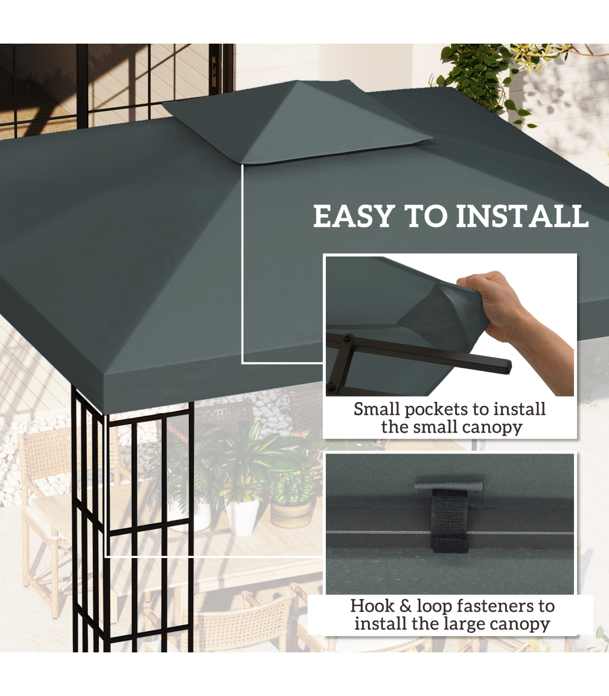 ● Hook and loop fastenings to attach and remove from gazebo easily