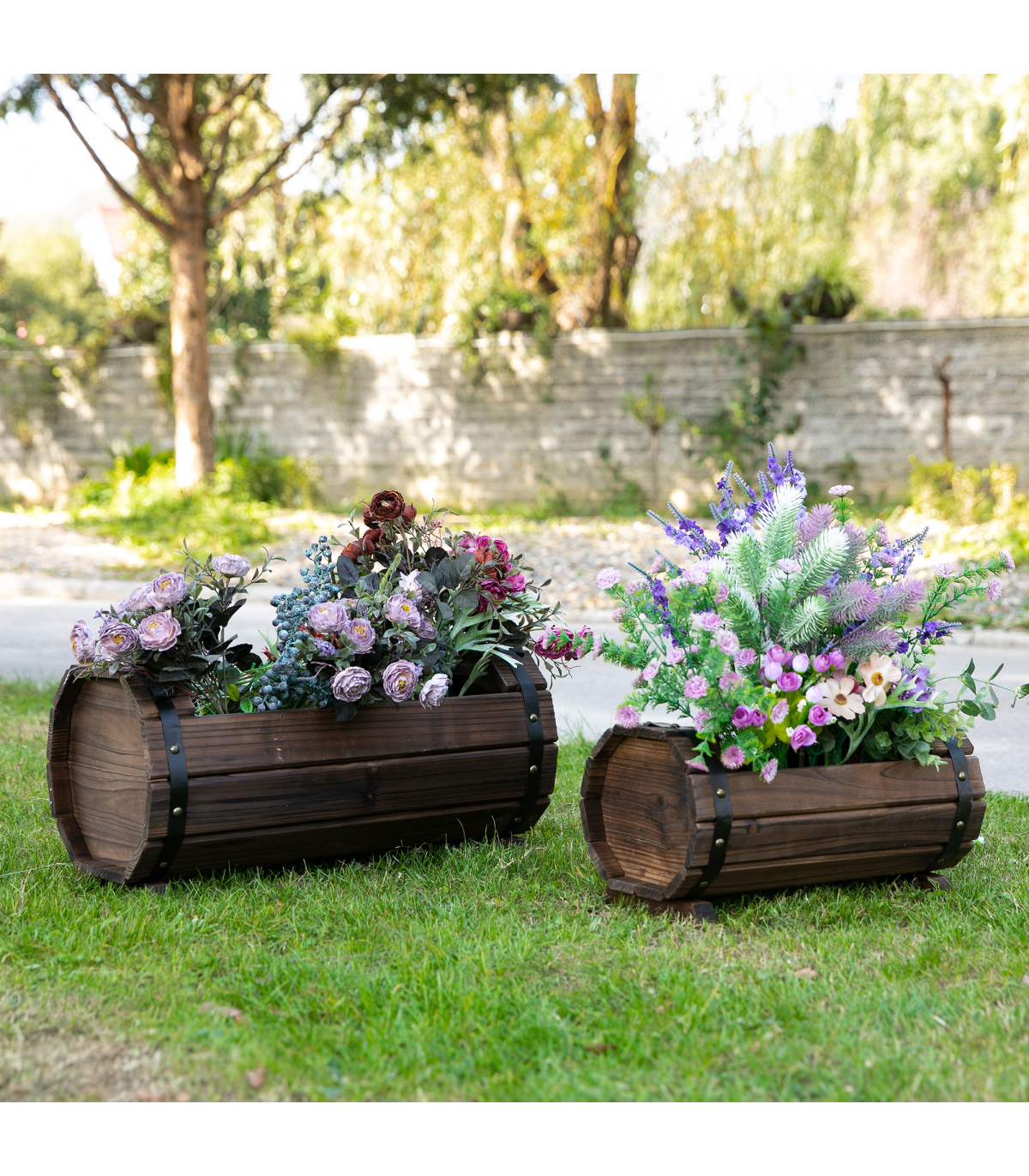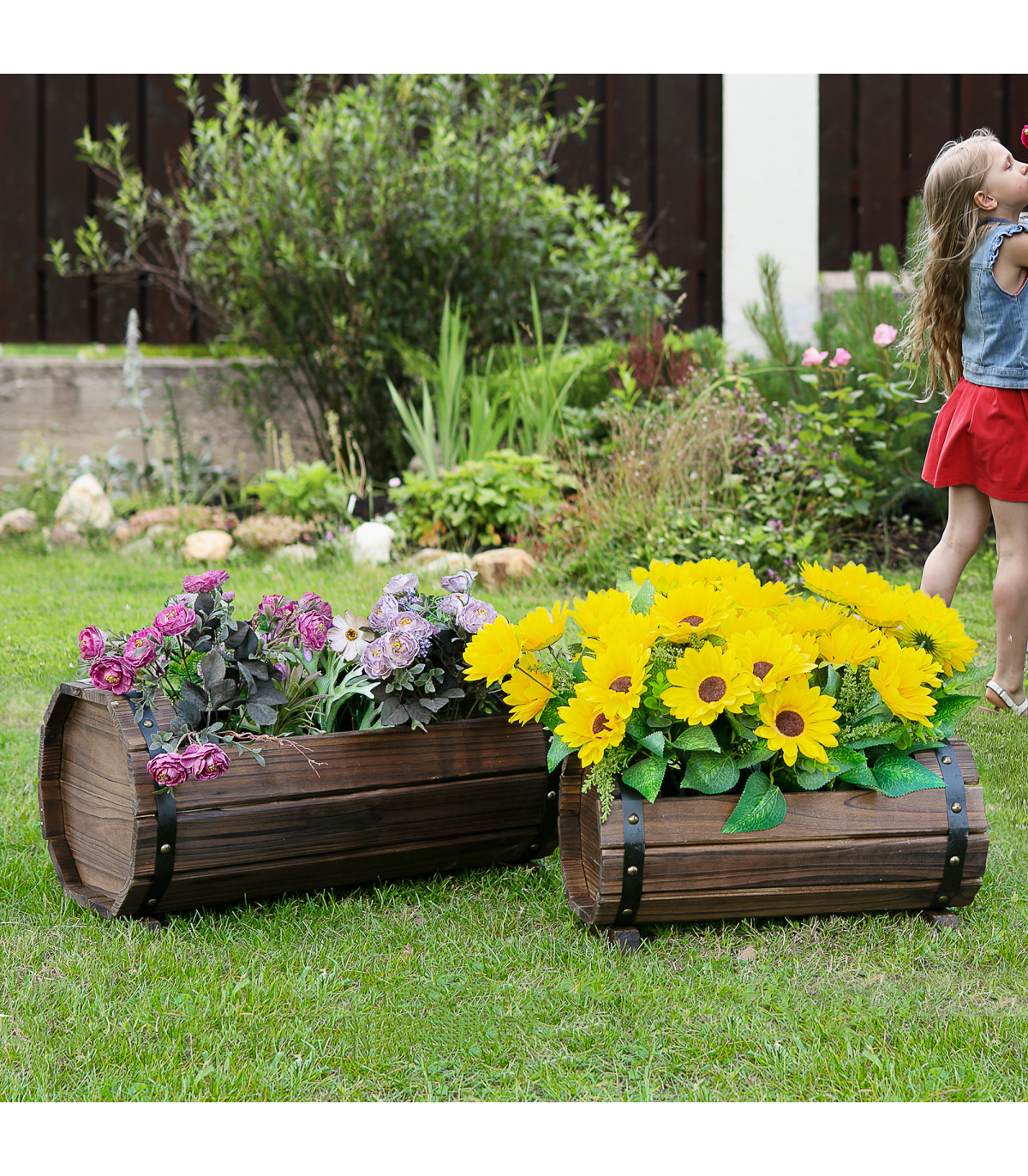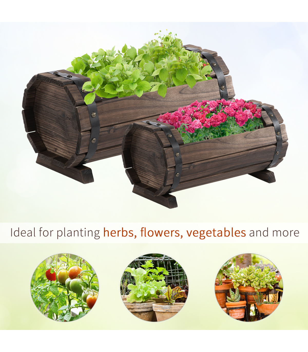 2PCs Wooden Planter Box Flower Plant Pot Flower Beds Plant Box" Description: - This charming planting bed from Outsunny can be a good choice for those who like planting. - With simple and natural appearance, ideal for backyard, garden, and balcony. - Made with high-quality solid wood for stability and durability. - Planting box can offer ample space for your plants to grow. - Proudly show off your unique landscape point of natural plants in your indoor or outdoor space. Features: - Raised plant bed gives you ample space to place your plants. - Made with solid carbonized wood for stability. - Ideal for your outdoor patio or as a part of your interior décor. - No burrs on the surface, easy to maintain. - Two pieces of flower beds for more decoration space. - No assembly required, free your hands.