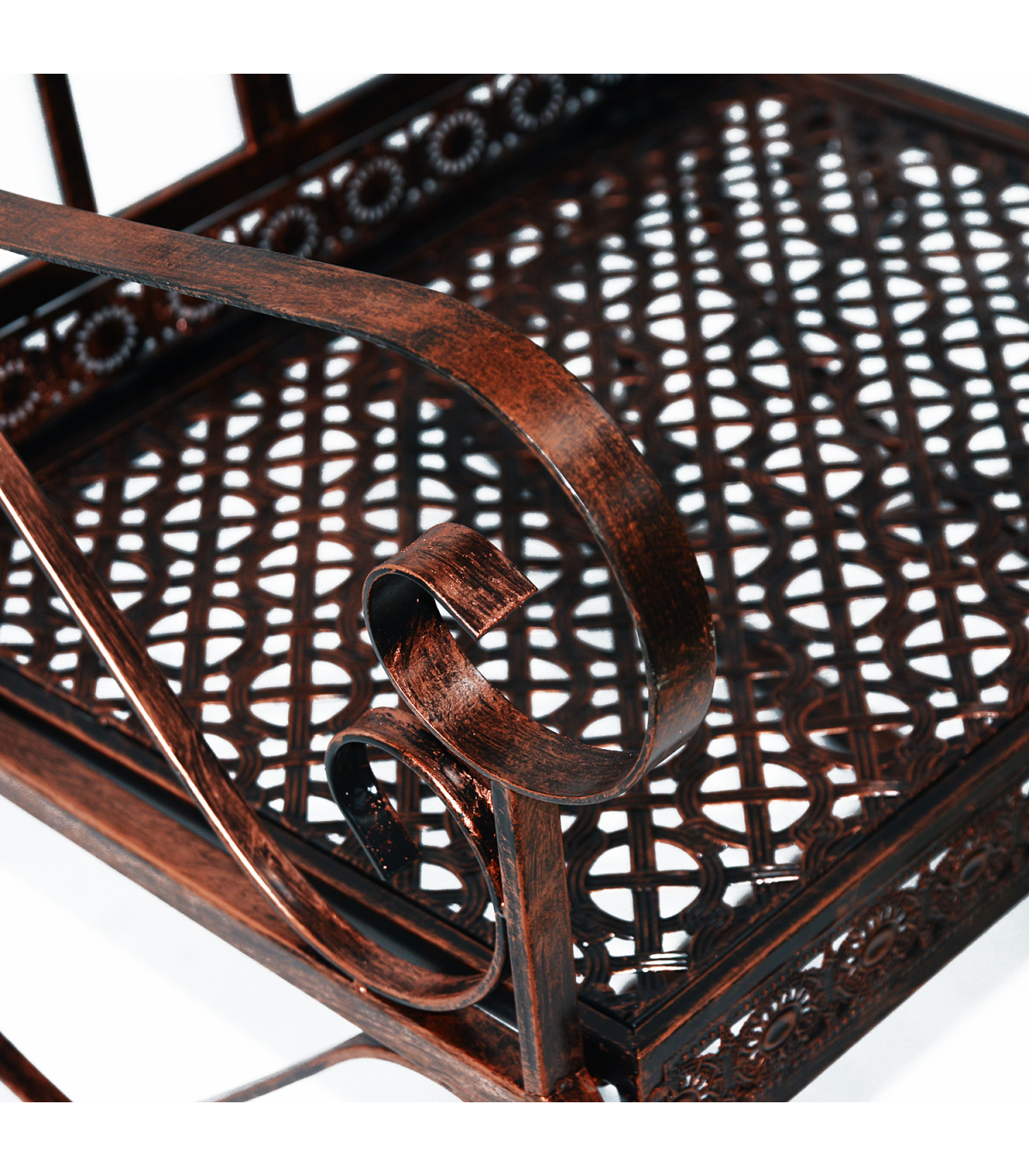 - Distinctive design on arms and back gives this rocker a traditional look