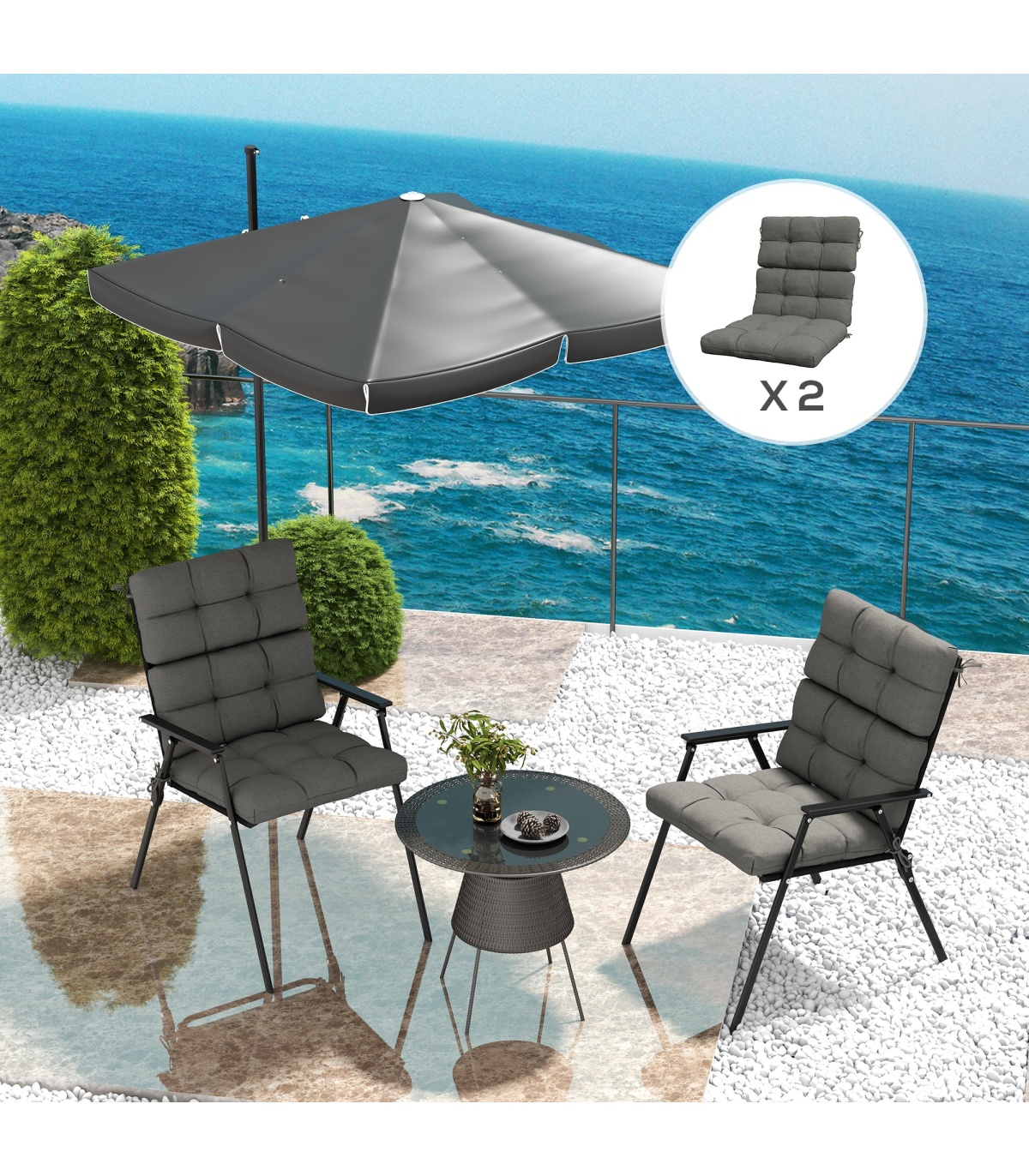 Outsunny 2pc Outdoor Seat Cushion with Backrest, Ties, for Garden, Grey