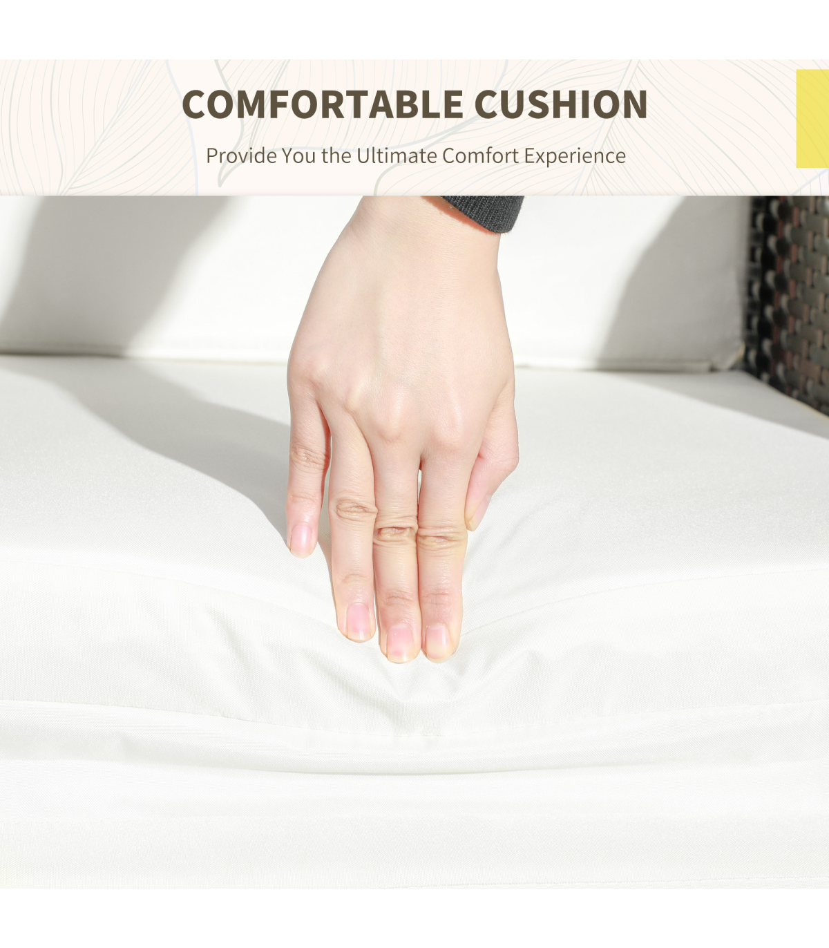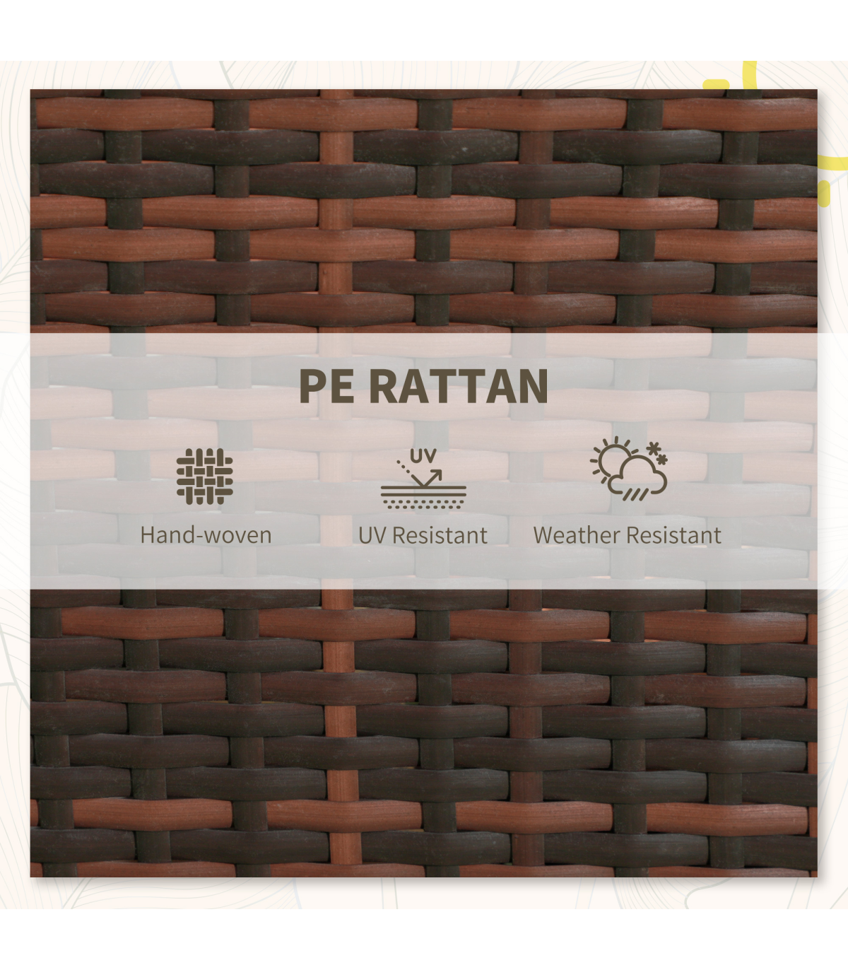 ? Powder coated steel frames for a strong core, wrapped in with protective and stylish plastic rattan