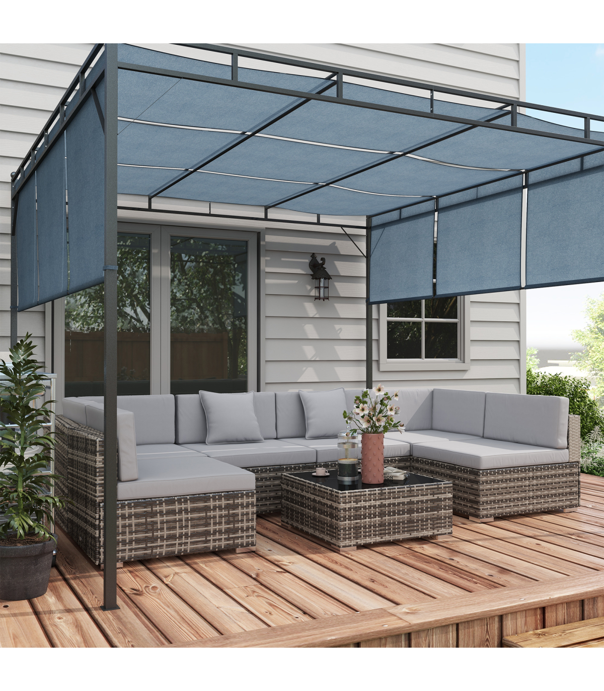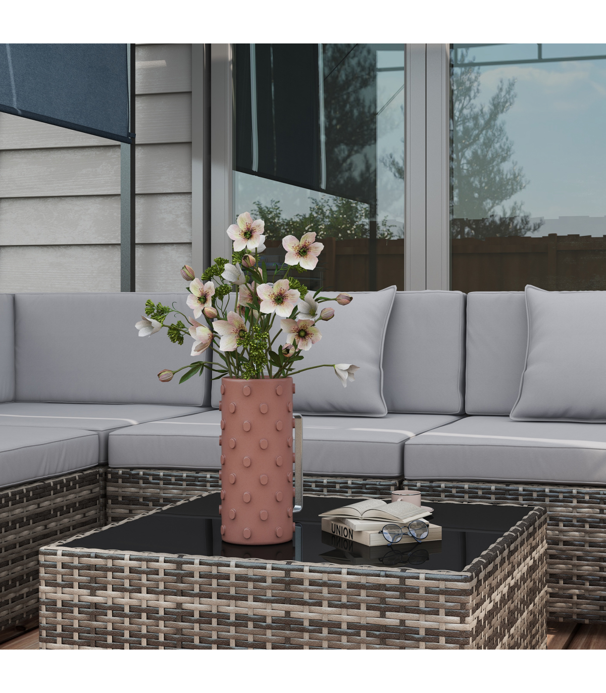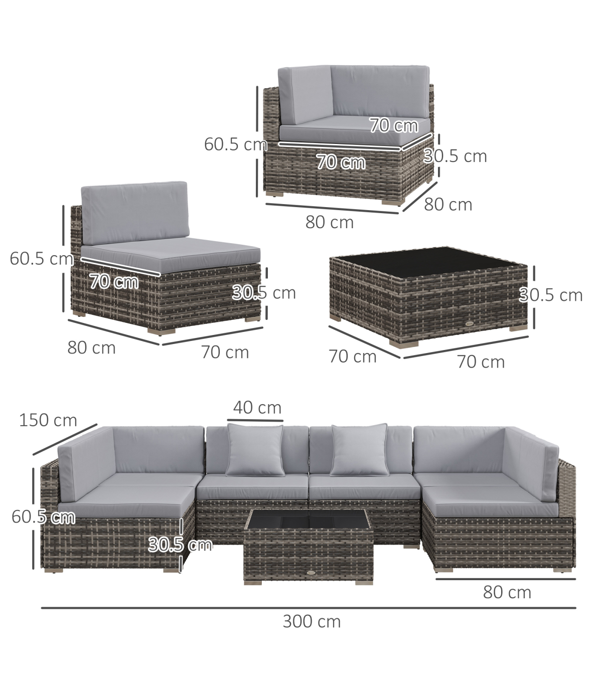 ? Material: Galvanised Steel, PE Rattan, Polyester, Tempered Glass