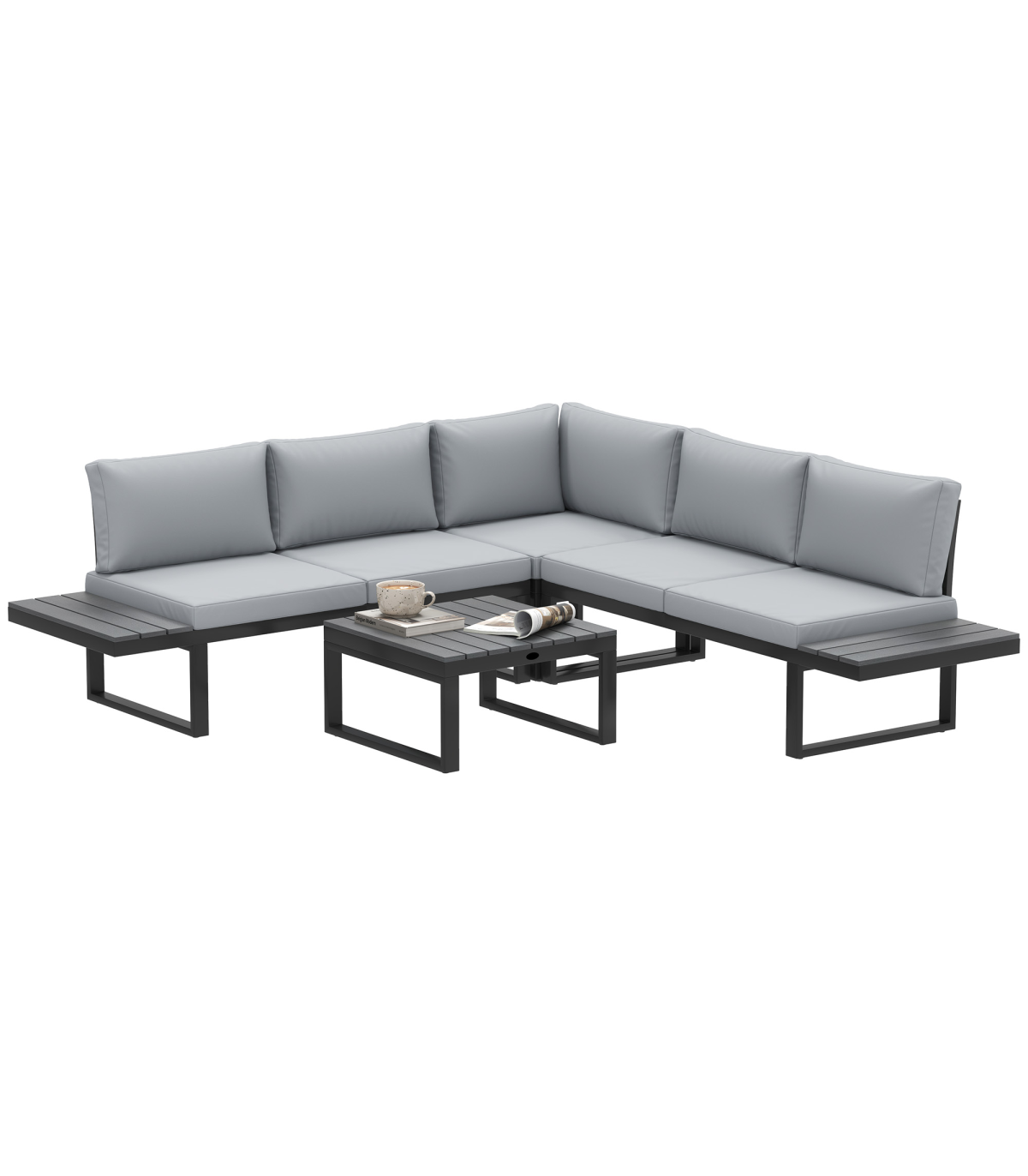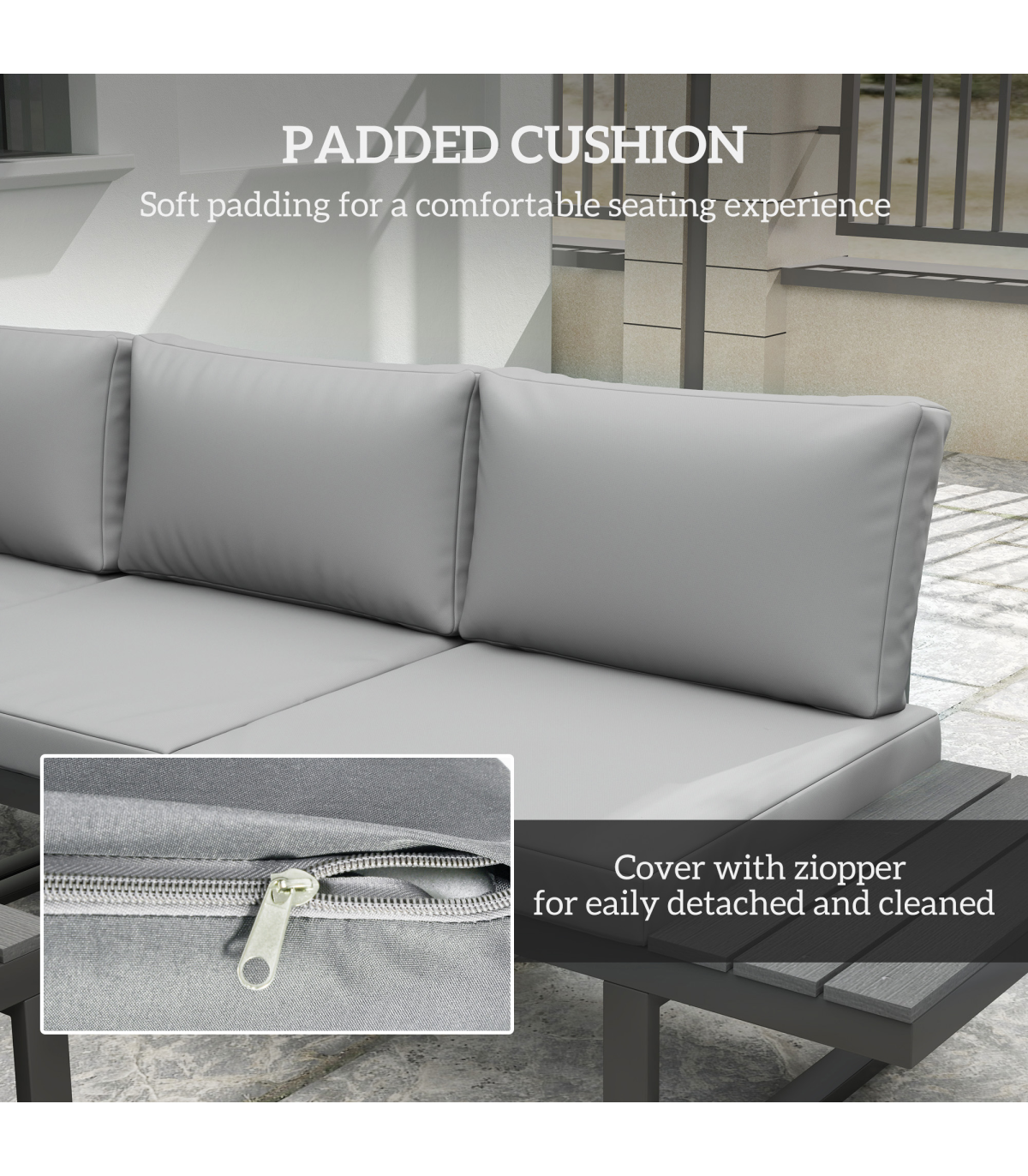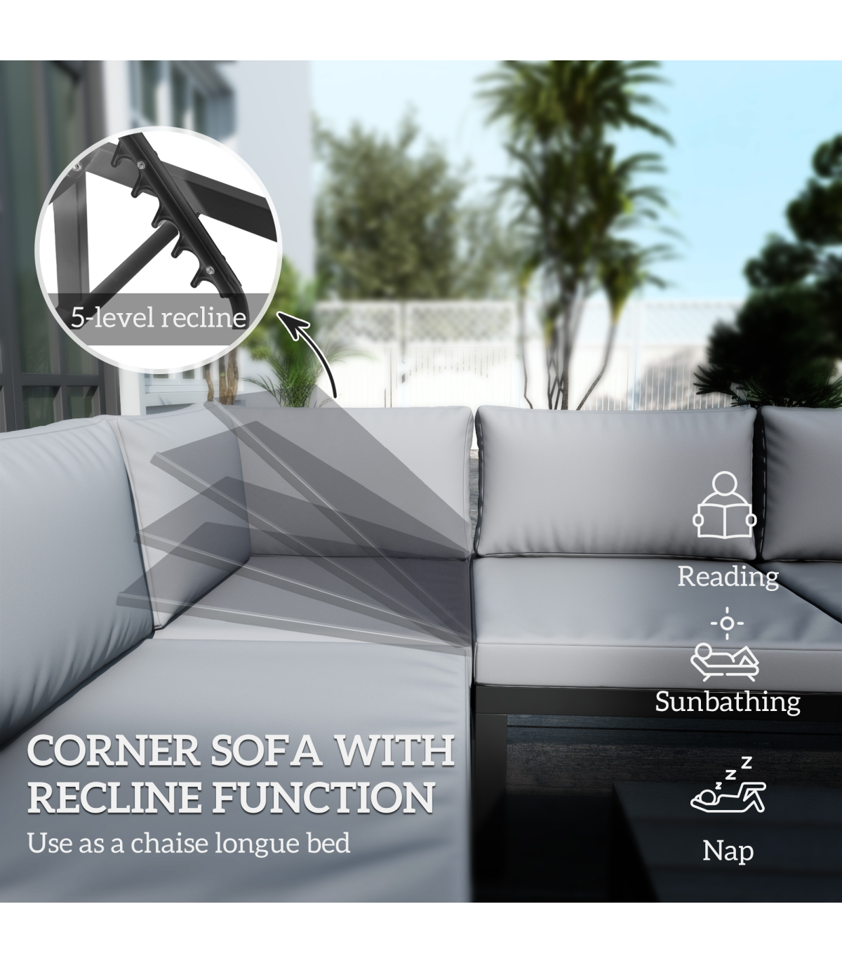 ● Corner piece reclines. Removable and washable covers