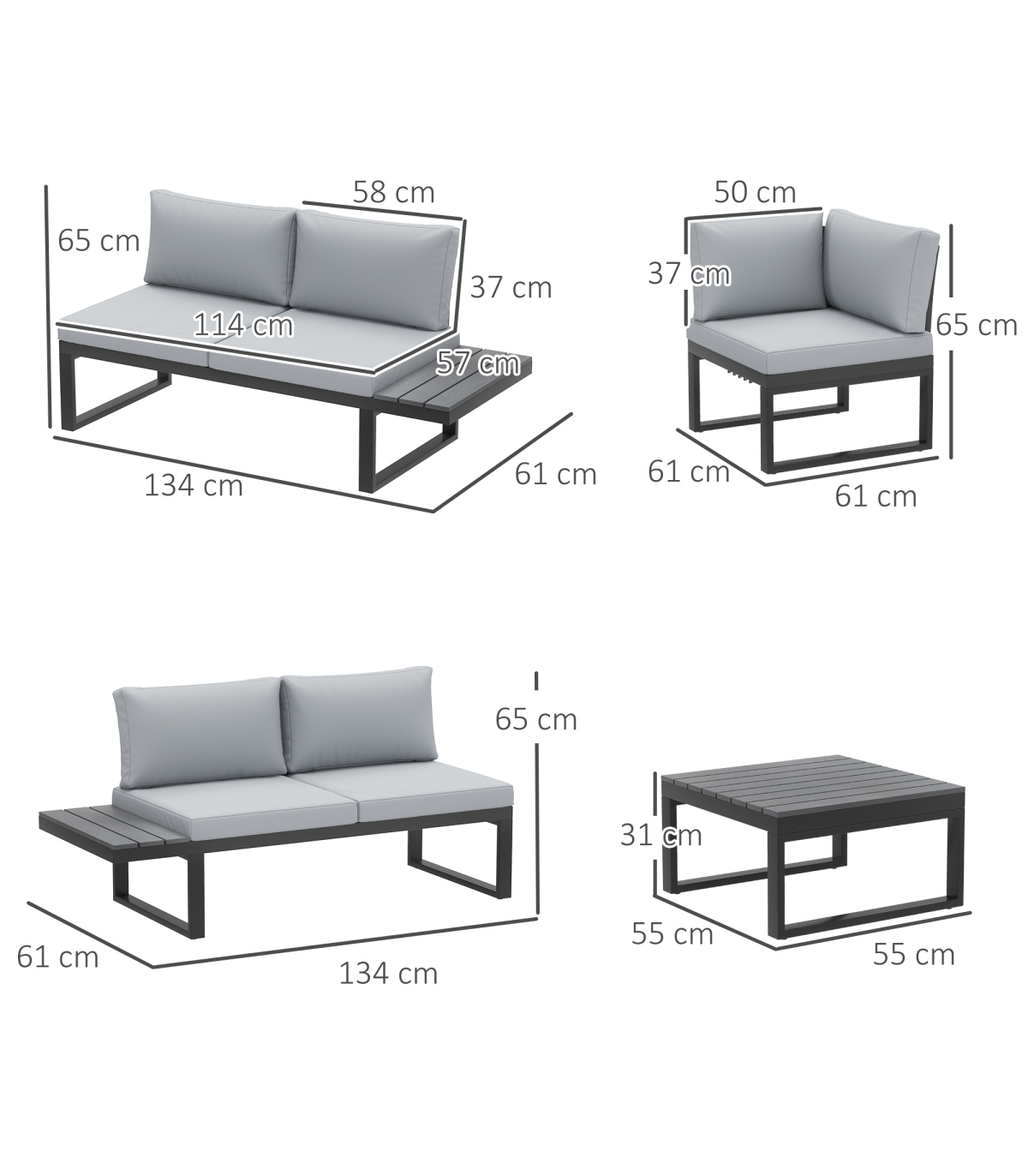● Loveseat Dimensions: 134W x 61D x 65H cm