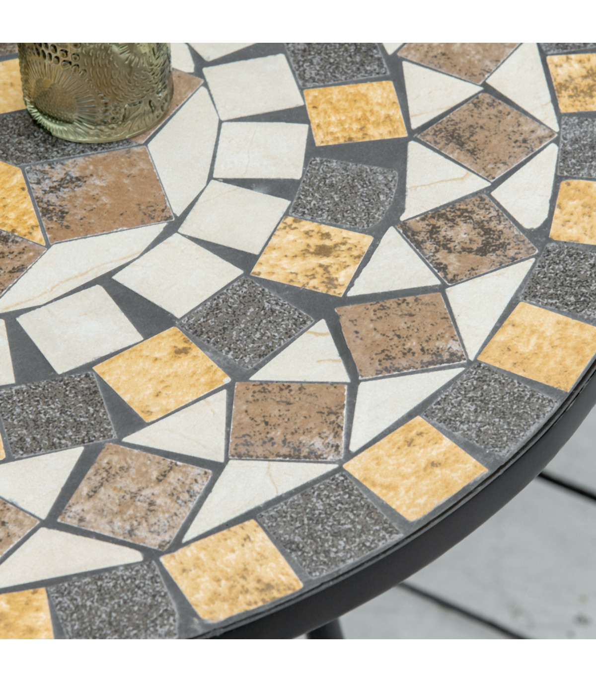 fitted with a colourful ceramic mosaic tabletop for plenty of character - whether as a garden patio table, indoor side table or as a plant stand.