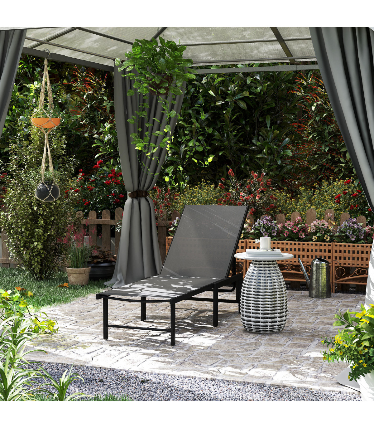 Outsunny Sun Lounger, 5-Level Reclining Sunbed, Grey