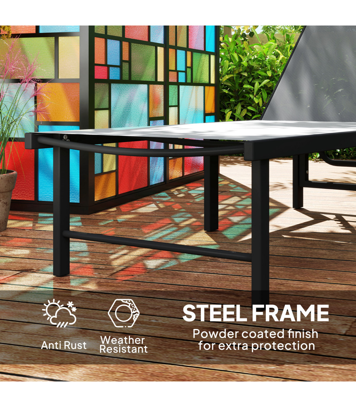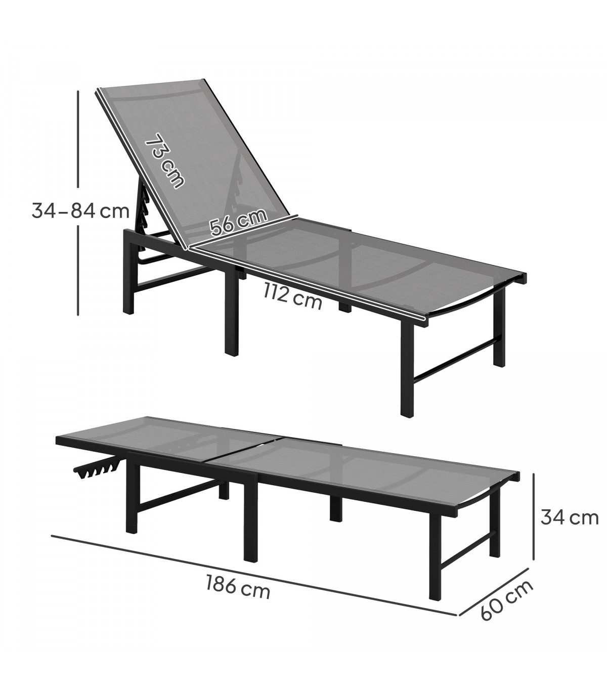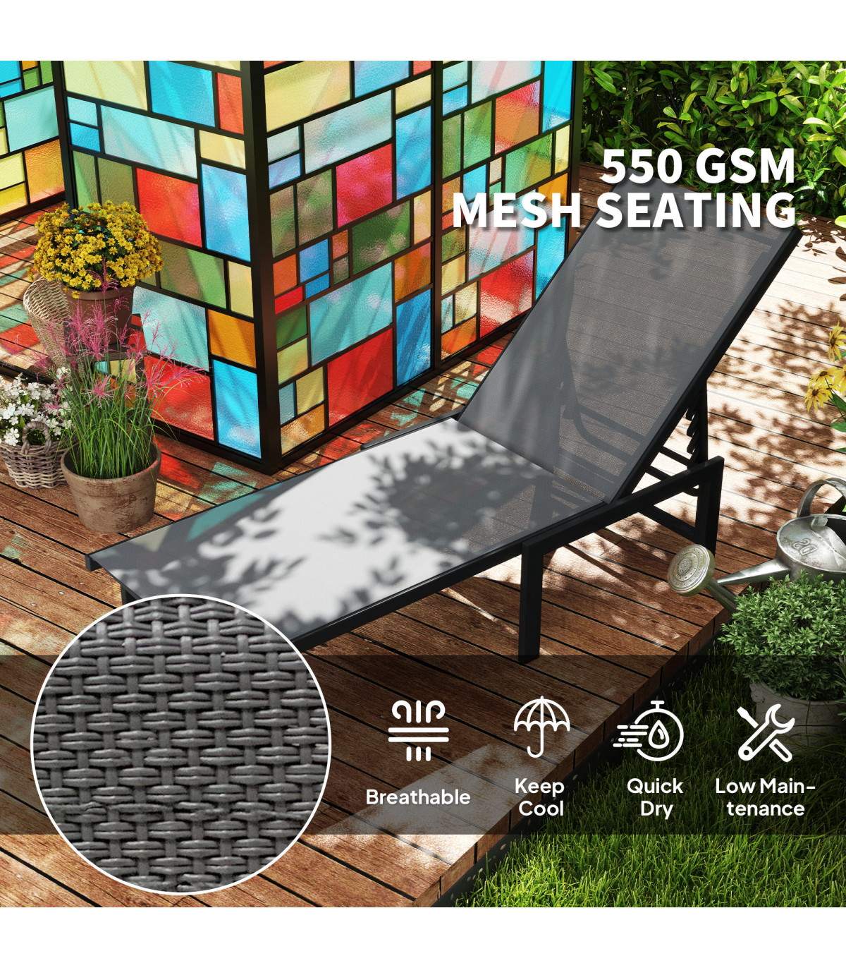 Lay the day away, your way with this Outsunny garden sun lounger. The reclining sun lounger with five-level adjustable backrest can be set to different angles to a position you want. Powder coated steel frames are strong to support you as you relax. Cool off on hot days with the breathable texteline on the outdoor sun lounger. So, sit down, sunbathe, take a nap and enjoy peace and comfort with this flat sun lounger!
