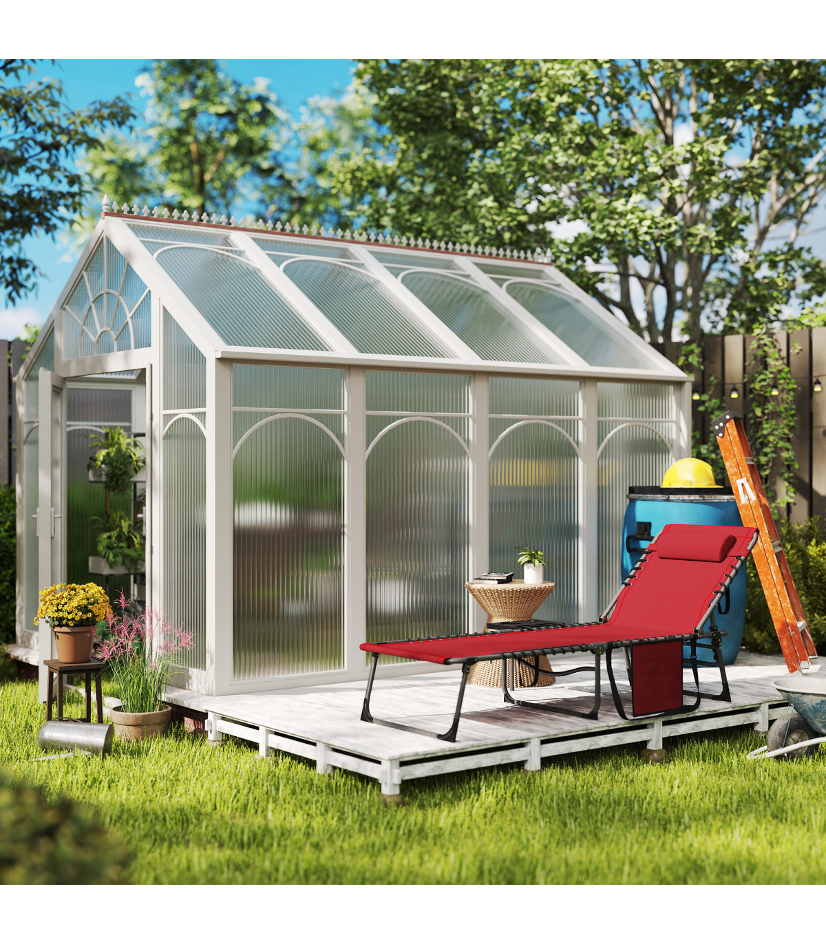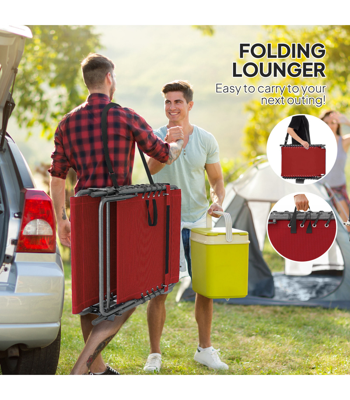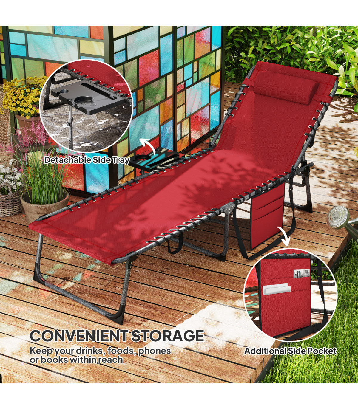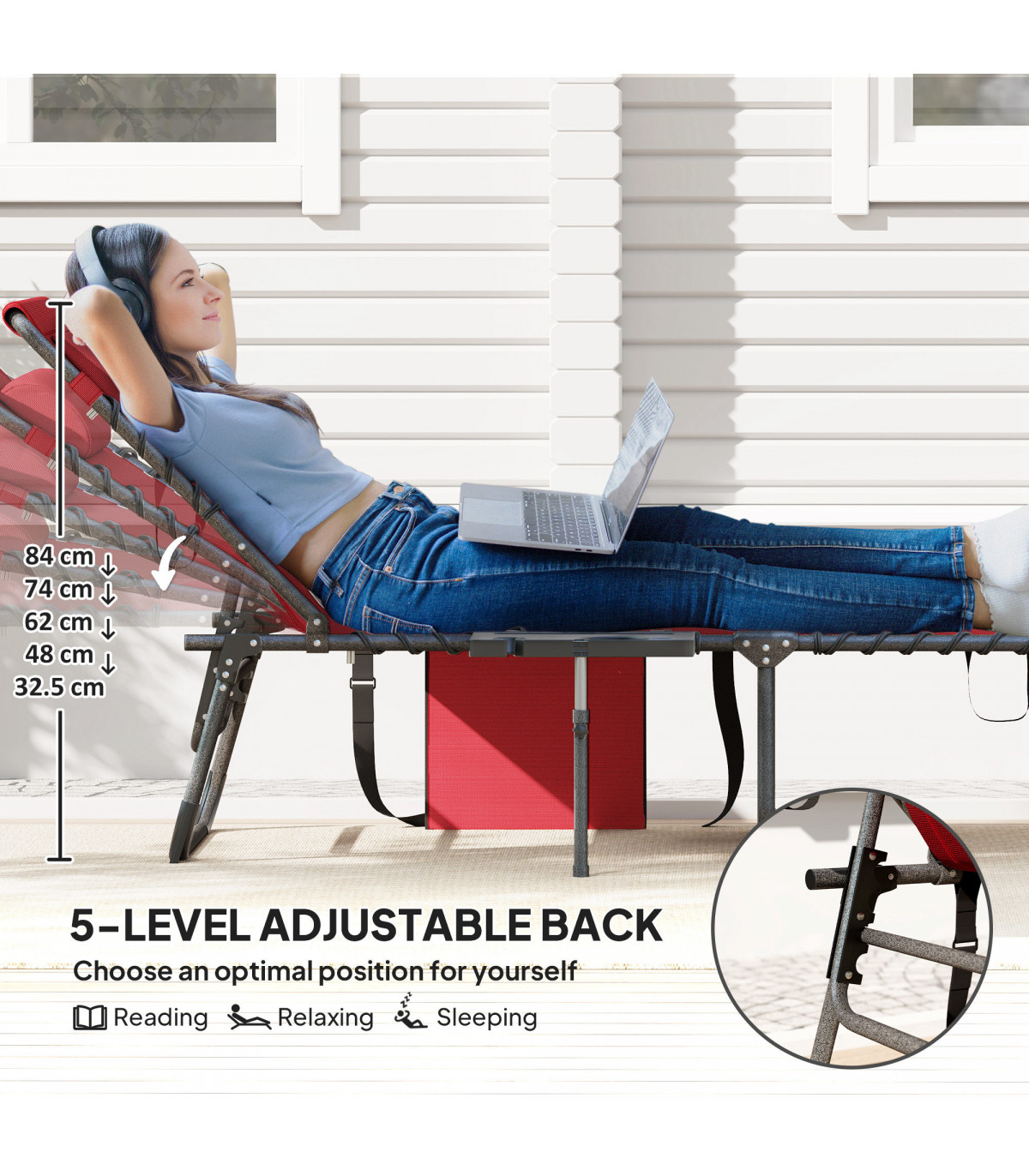 Outsunny Folding Sun Lounger with 5-Level Reclining Back, Side Table, Red