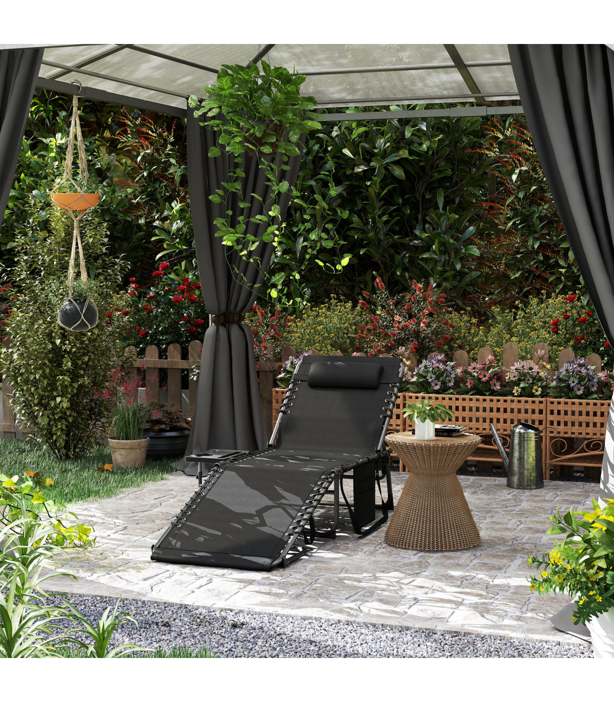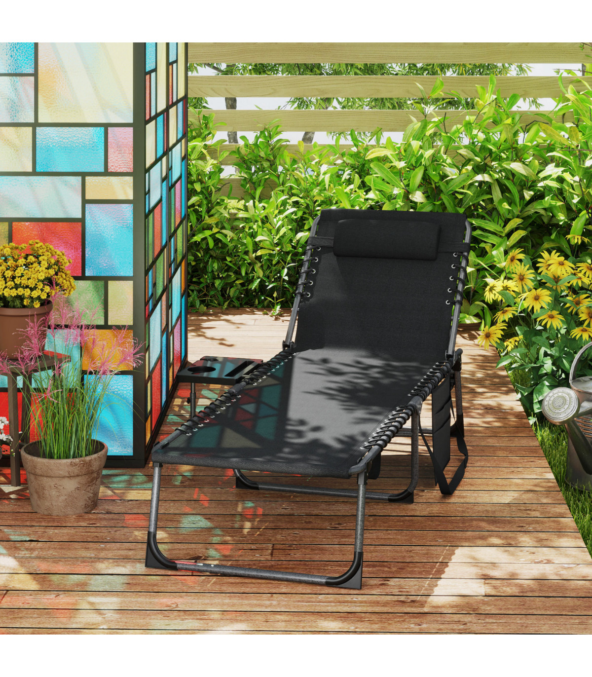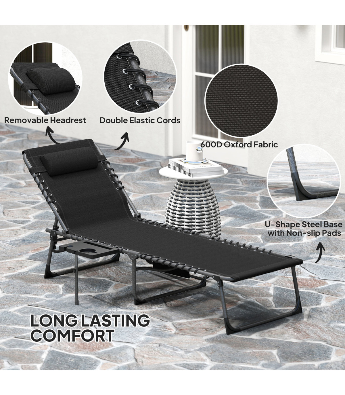 Outsunny Folding Sun Lounger with 5-Level Reclining Back, Side Table, Black