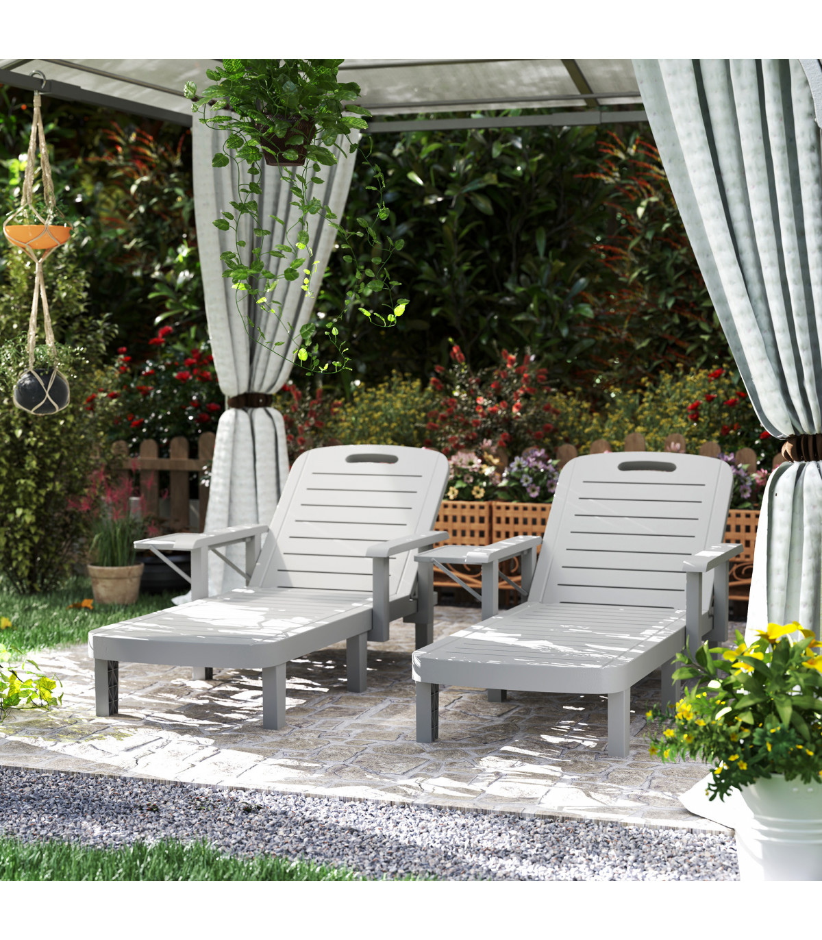 Outsunny Set of 2 Resin Reclining Sun Loungers for Garden, Light Grey