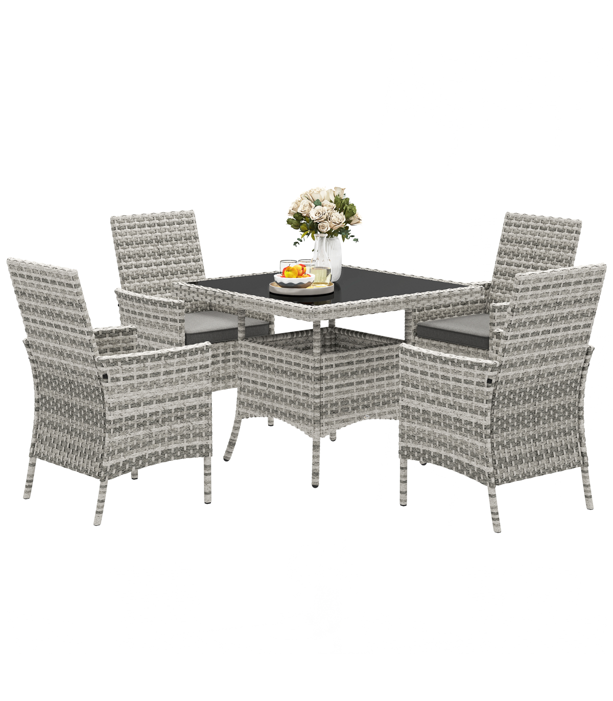 ● Material: PE Rattan, Steel, Fibre cloth, Tempered glass, 3D vertical cotton