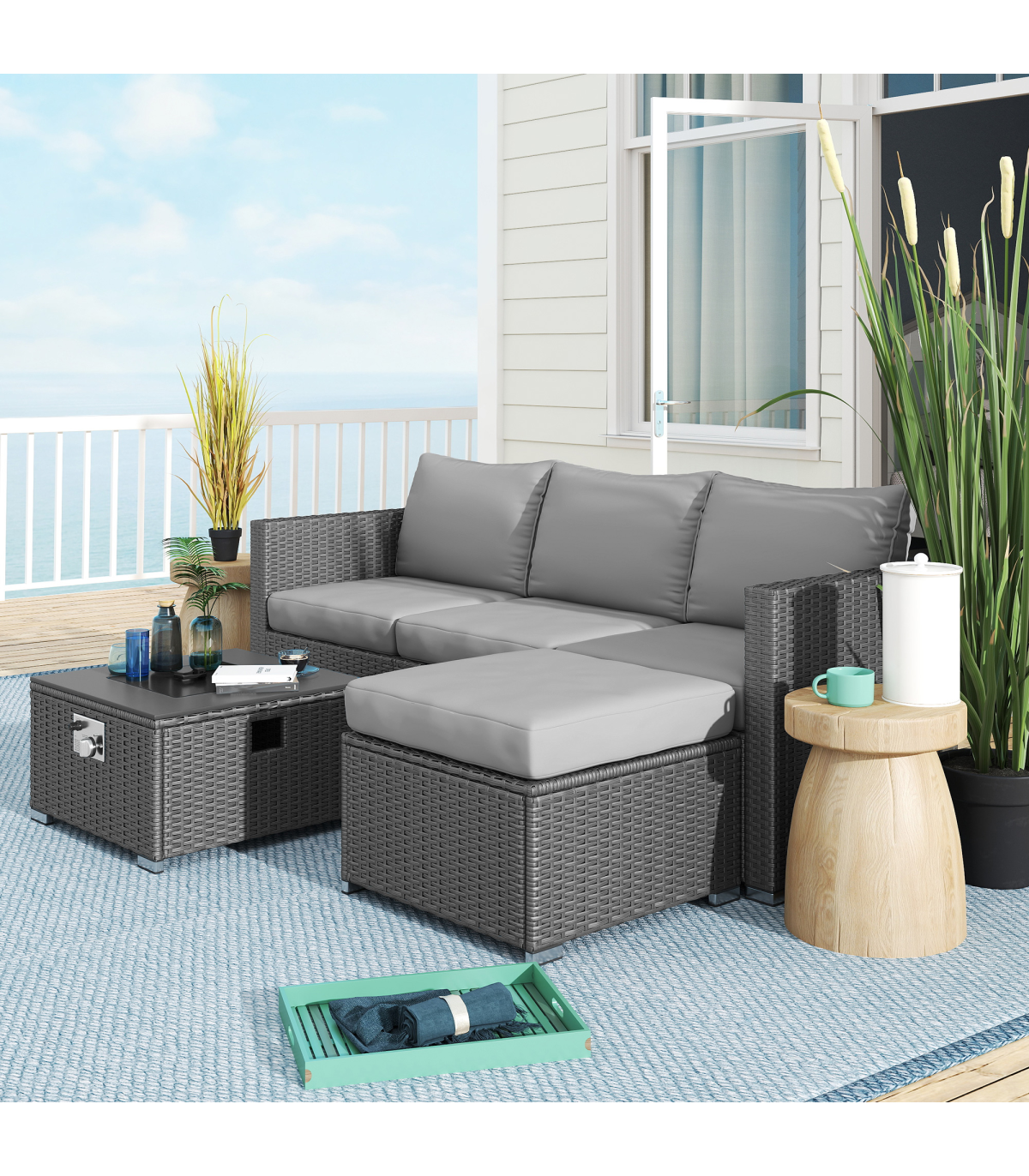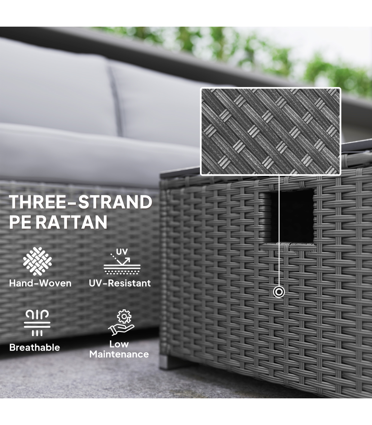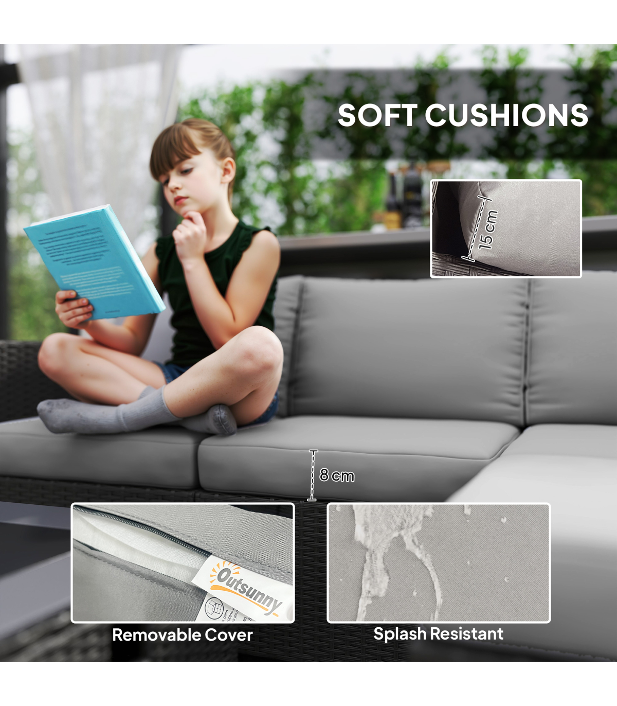 Outsunny 4 Seater Rattan Sofa Set with Footstool Thick Cushions Grey
