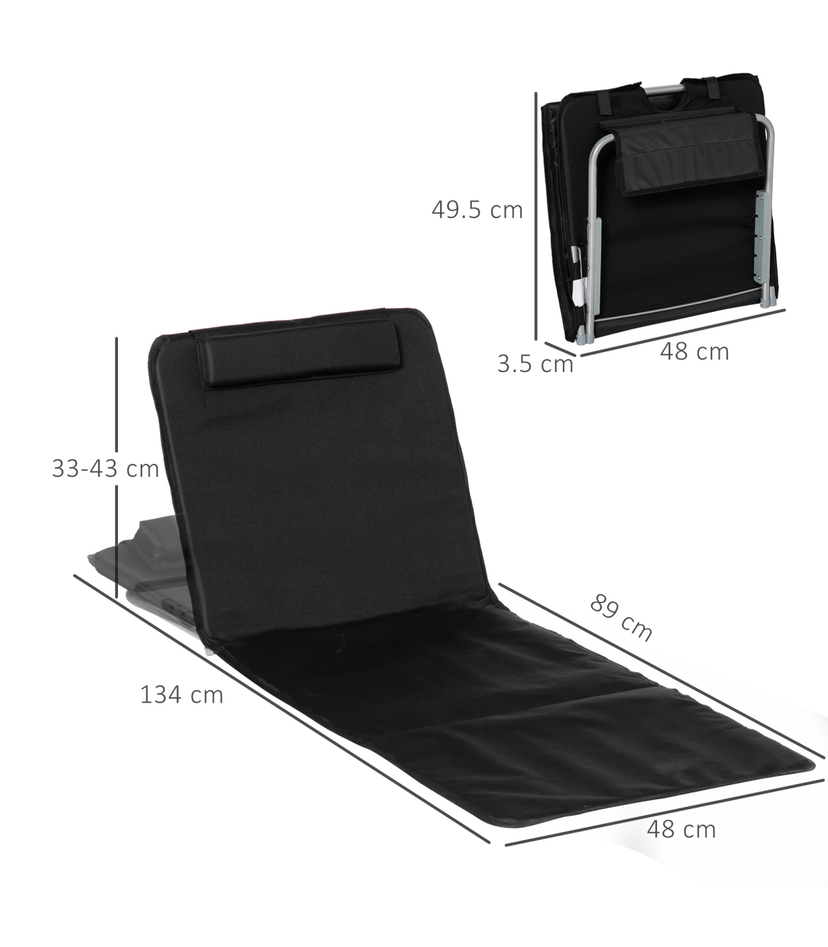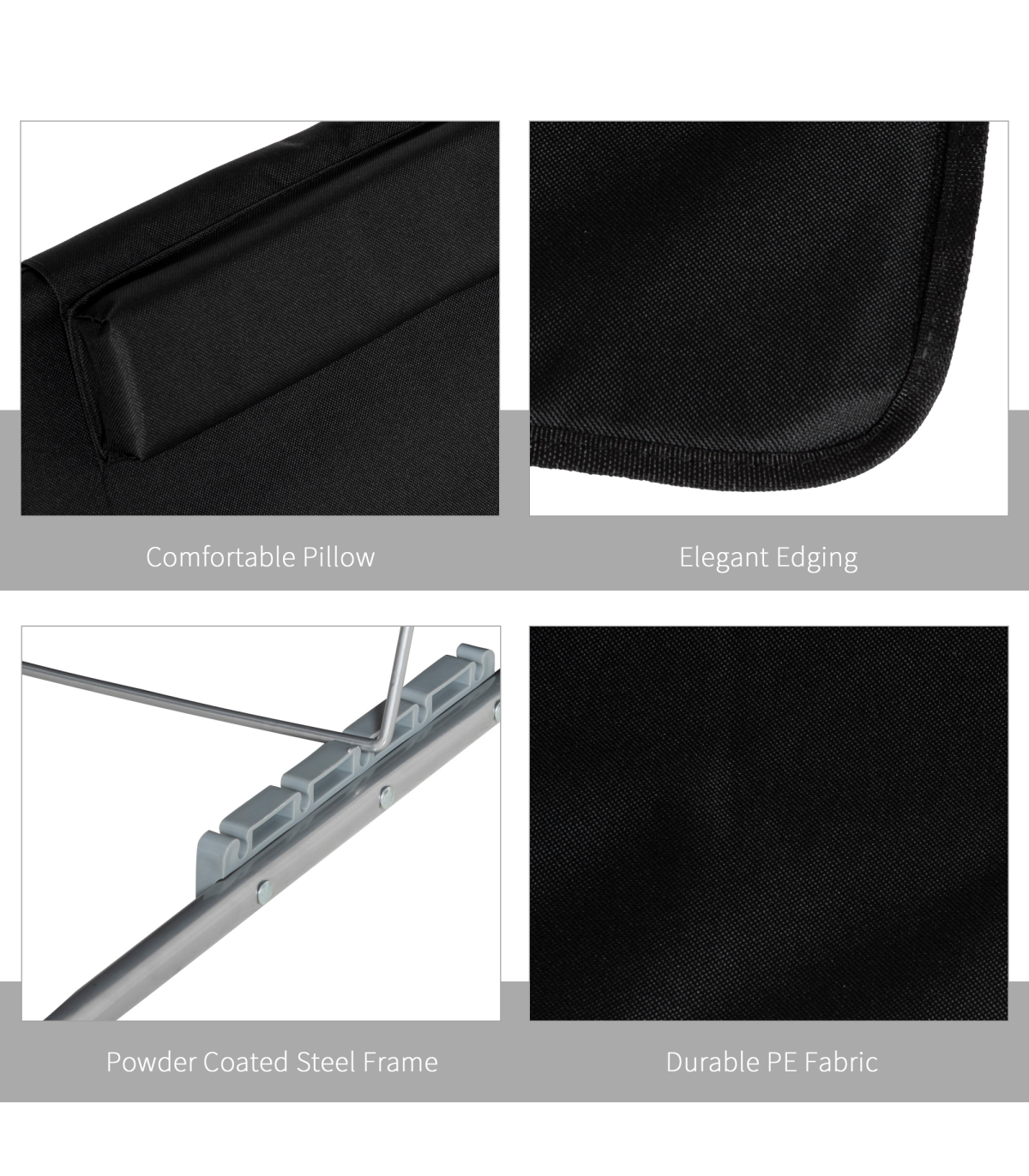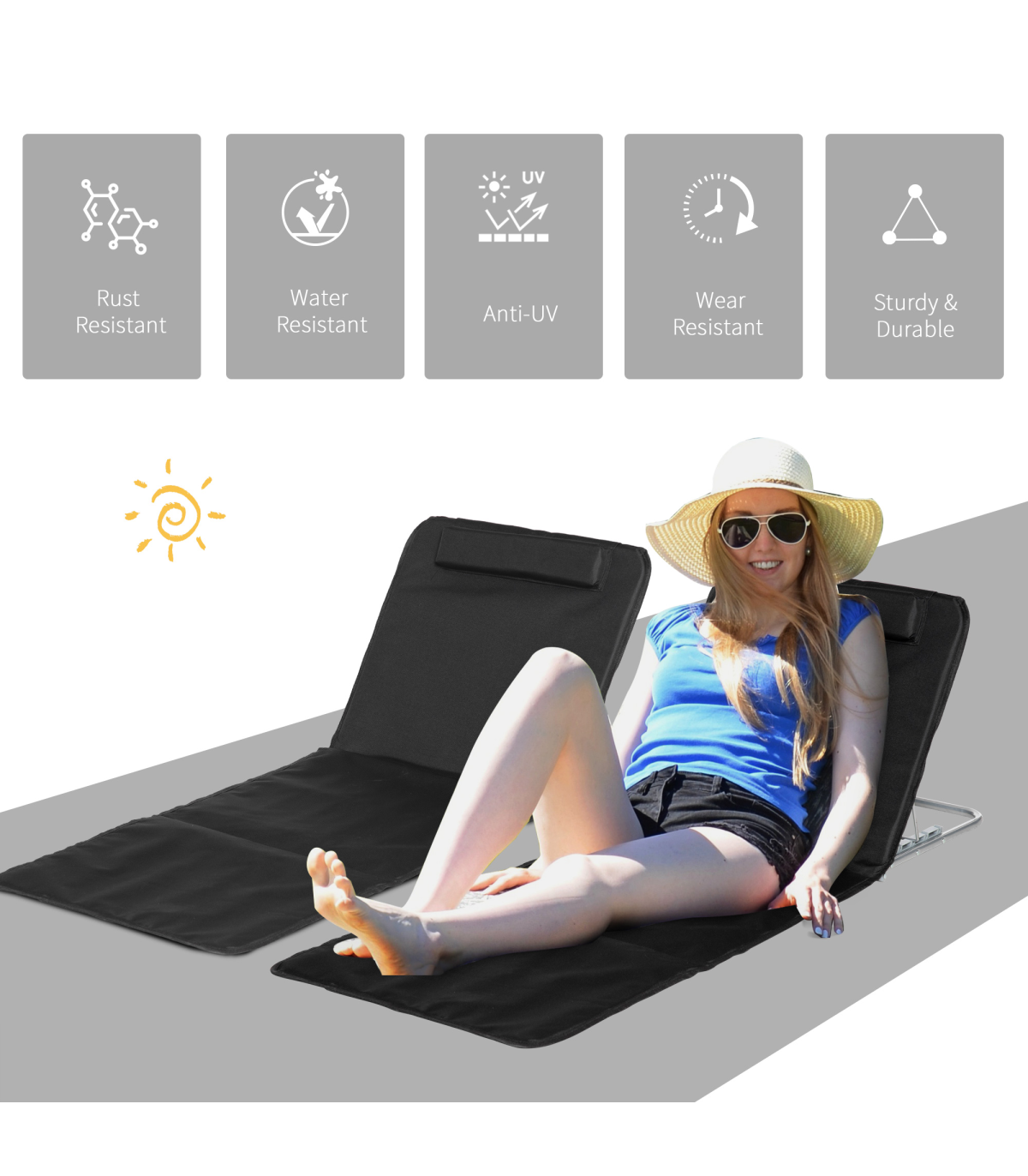 Outsunny 2 Pieces Outdoor Beach Mat Steel Reclining Chair Set w/ Pillow Black