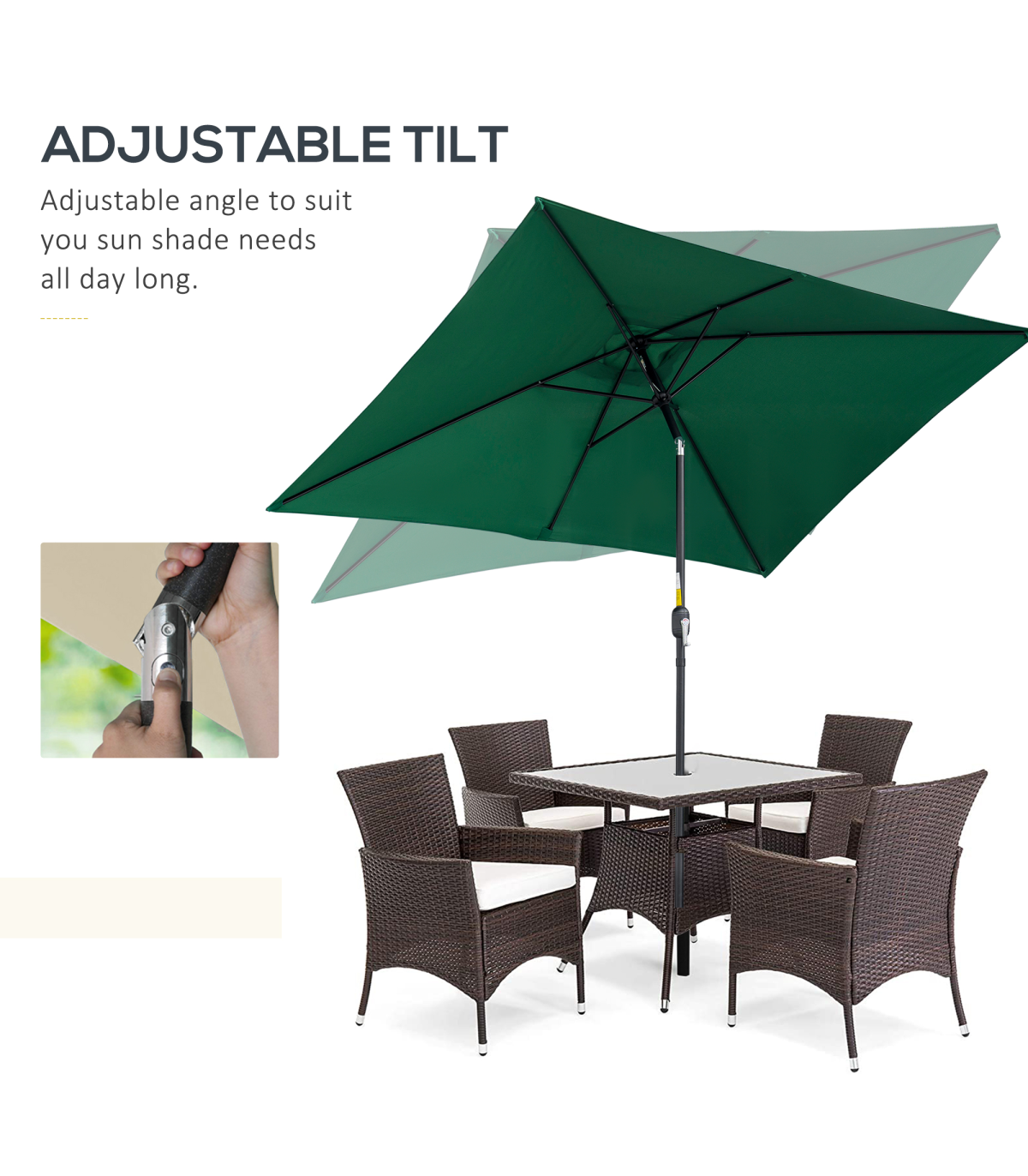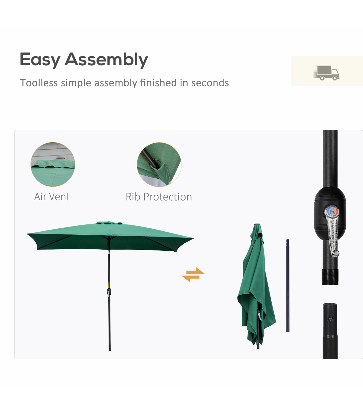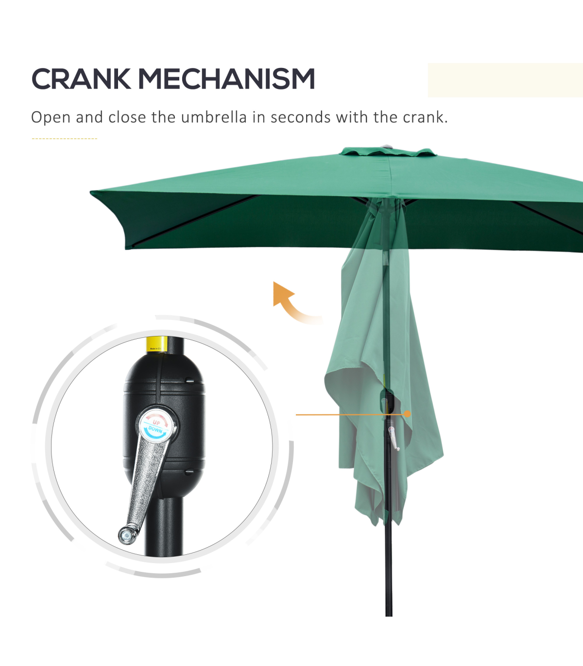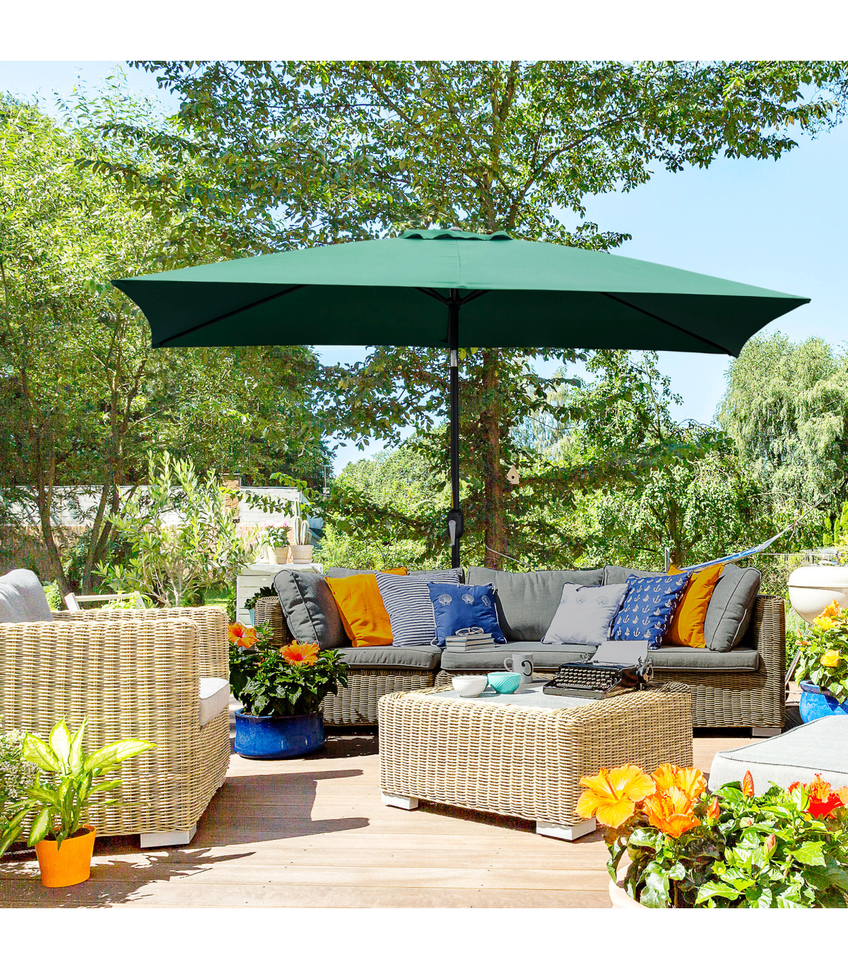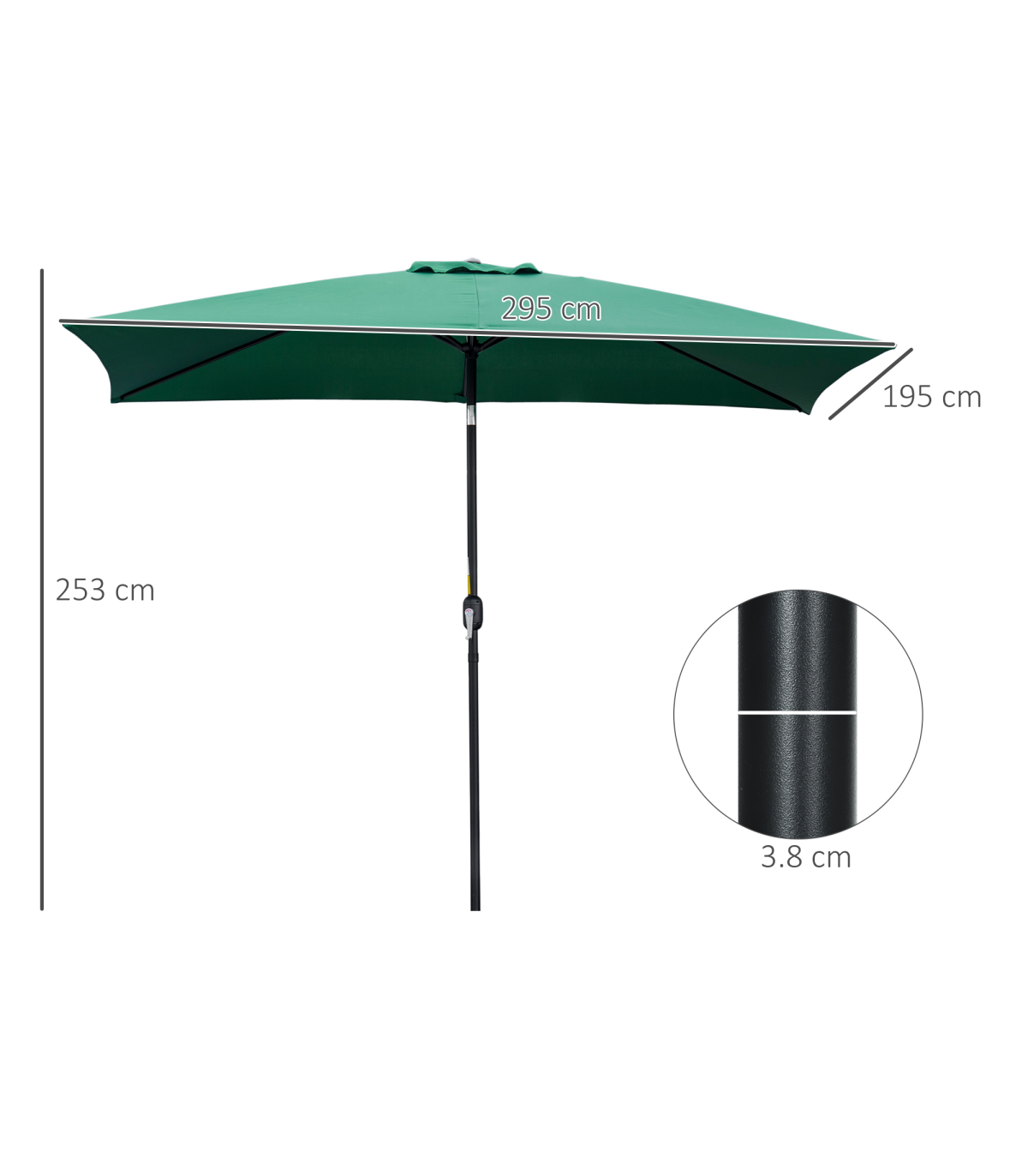 parasols umbrellas are tough and naturally resistant to mild weathering.UV RESISTANT CANOPY: The umbrella for garden table's thick 180g / ? polyester, filters out harmful sun rays and keeps your area effectively shaded.ADJUSTABLE ANGLE: Easy to set to a position which works for you. Simply press the button and adjust when the sun parasol open.CRANK HANDLE: Easy to open and close this outdoor parasol. Pole: 3.8cm.DIMENSION: Overall Dimension: 195L x 295W x 240H cm. NOTE: Base not included. Assembly required.