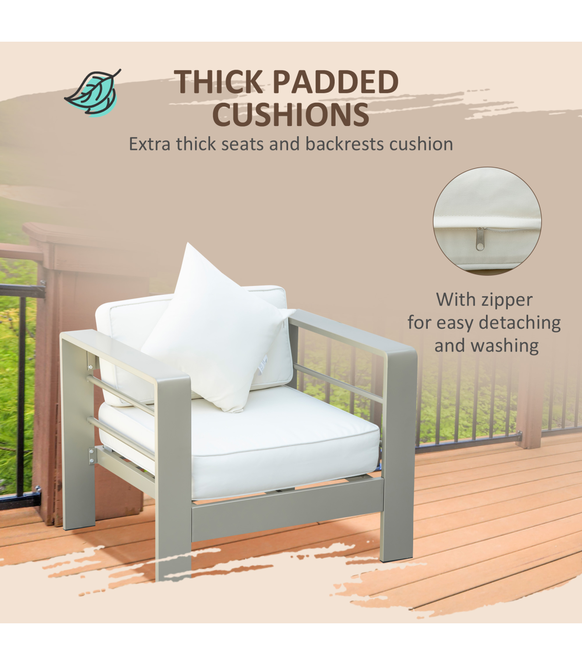 4 PCs Aluminium Garden Furniture Set w/ Thick Padded Cushion