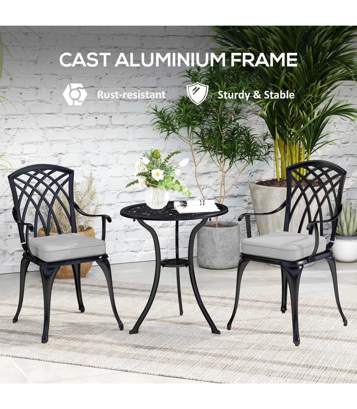 ● Cast aluminium frames ensures each piece is tough and solid for everyday use