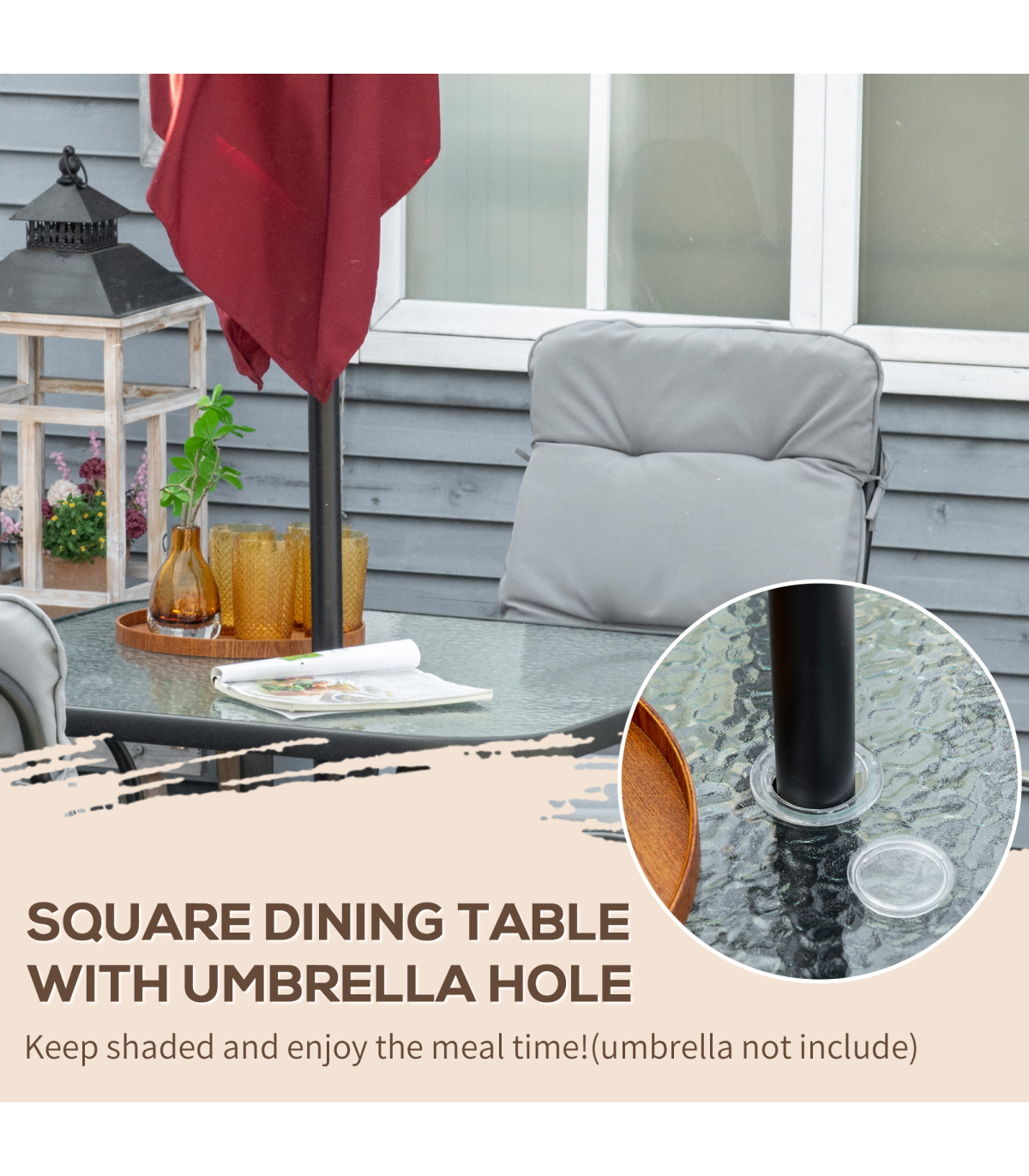 Outsunny Garden Dining Set, Glass Table w/ Umbrella Hole & Texteline Seats