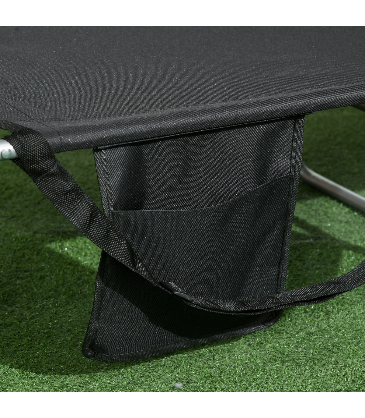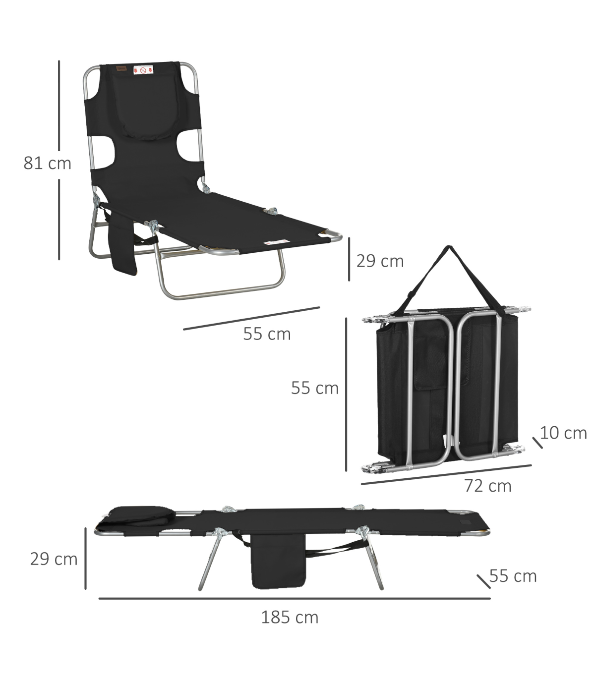 Padded face hold: Massage table style design for your head to rest in this garden lounger - perfect for sunbathing on your front. Great for reading too in your garden and outdoor area.Five-level adjustable back: Folding sun lounger can be be locked to different positions - easy to lie back at an angle you like.Steel frame, foldable sun lounger design: Powder coated for extra strength - a supportive structure. Portable sun lounger is easy to carry and store.Side pocket: Keep small things close by in this garden sun lounger.Dimensions: Reclined: 81H x 183L x 55Wcm. Folded: 10H x 72L x 55Wcm. Maximum load 120kg. No Assembly required.
