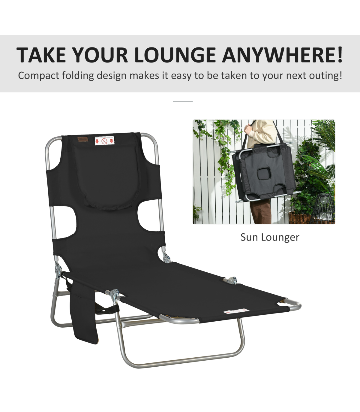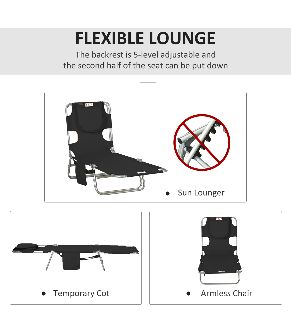 Patio Foldable Sun Lounger 5 Level Adjustable Reclining Chair Black