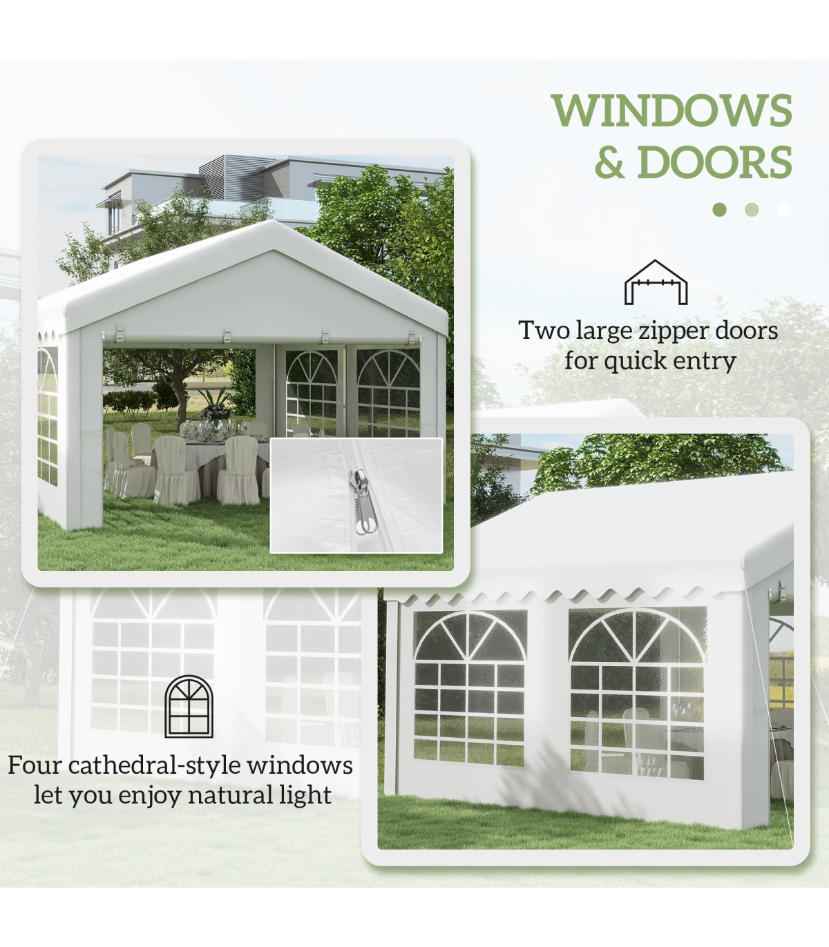 - Double zipper doors on both ends to allow for access from either end. There are 6 pcs transparent PVC church windows for maximum light and viewing
