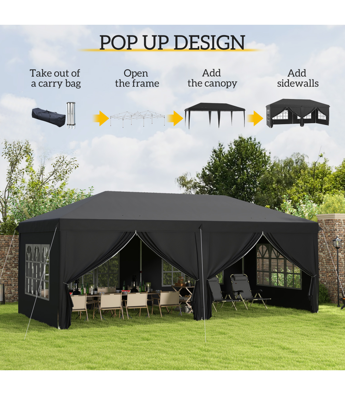 - Pop up gazebo with folding design for easy set up