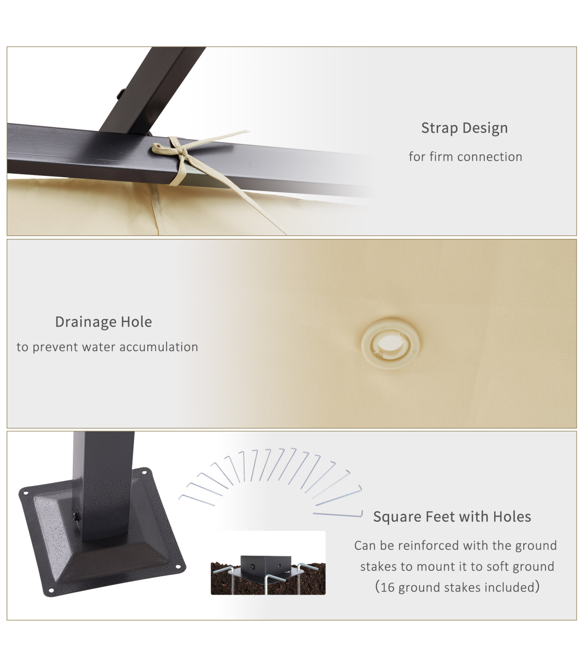 - Grommet holes on the canopy allow for safe drainage of liquids.