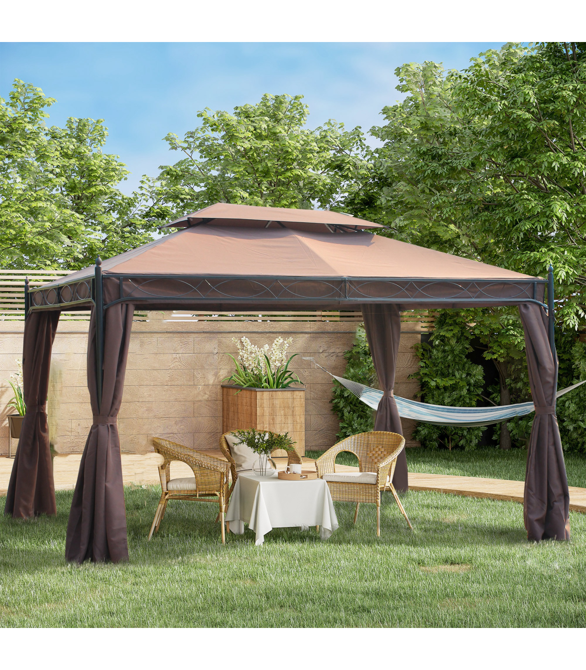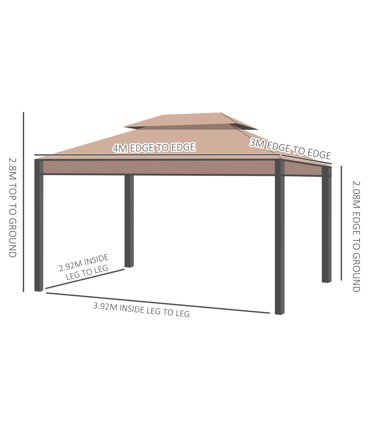 Metal Coffee 298cm (L) x 398cm (W) x 285cm (H) 3x4m Gazebo with Sidewalls