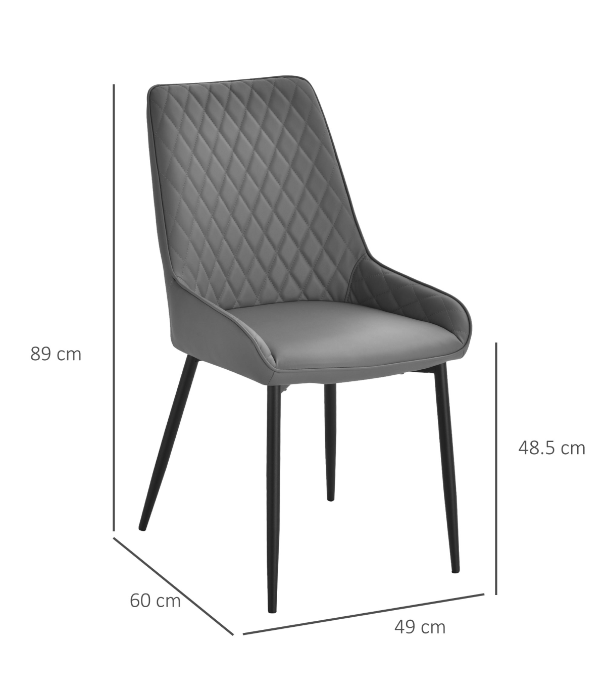 - Dimensions: 89H x 49W x 60D. Seat: 48.5H x 49W x 43Dcm