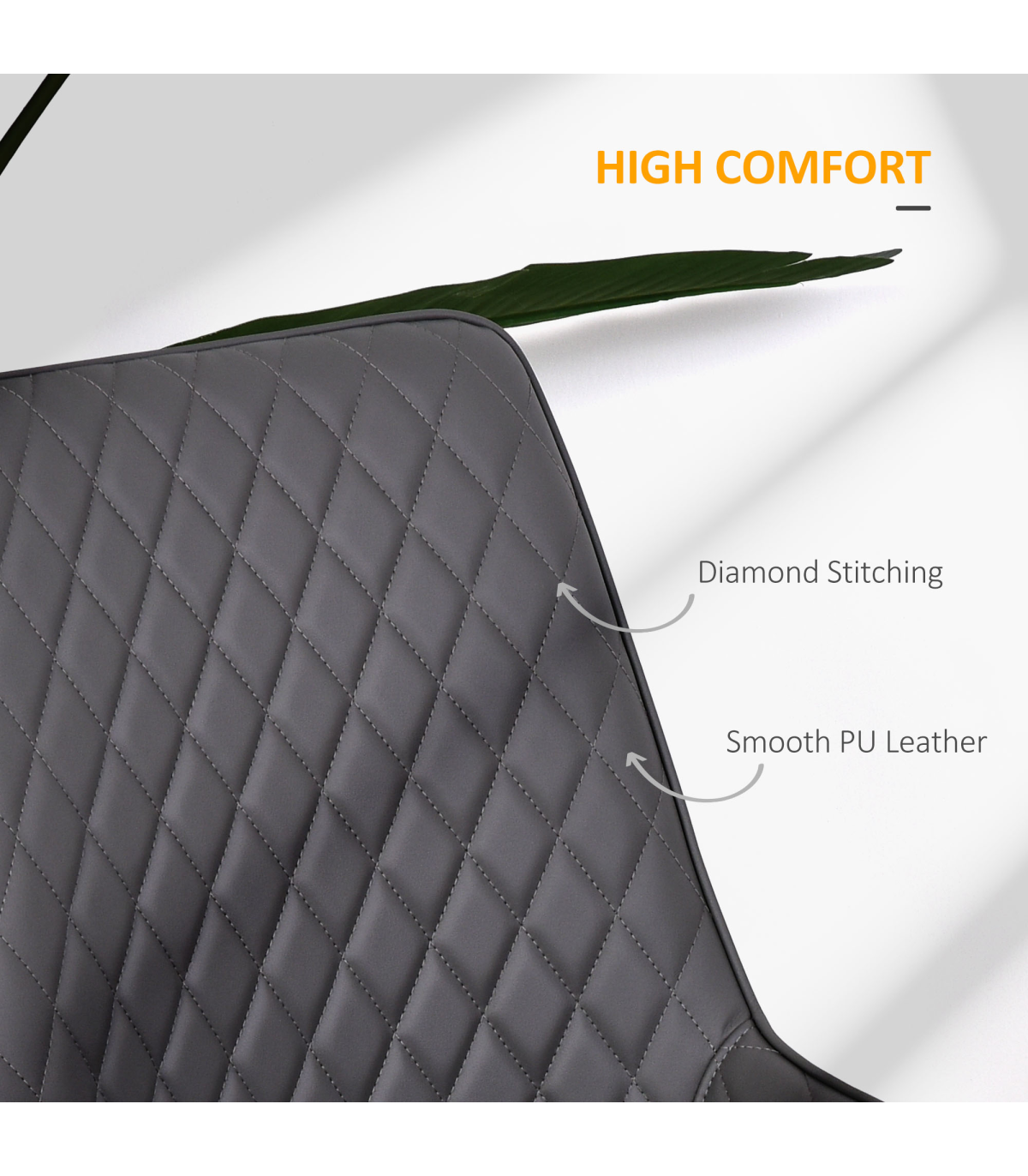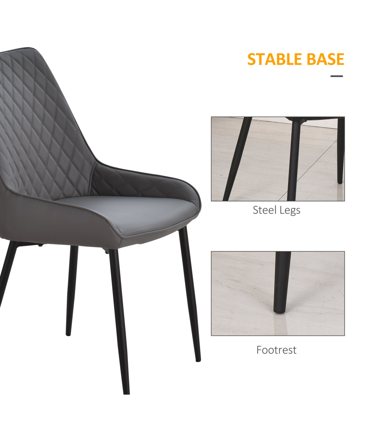 Sit down in simple sophistication with this set of two dining chairs from HOMCOM. Using metal for the frame to ensure a tough and solid structure, each chair is formed into an armless design for plenty of room when seated. The seat and back is covered in thick sponge for comfort, with PU leather upholstery for a sleek look. Quilted on the back for extra style, they are finished with metal legs for stability and foot pads to protect your floor.