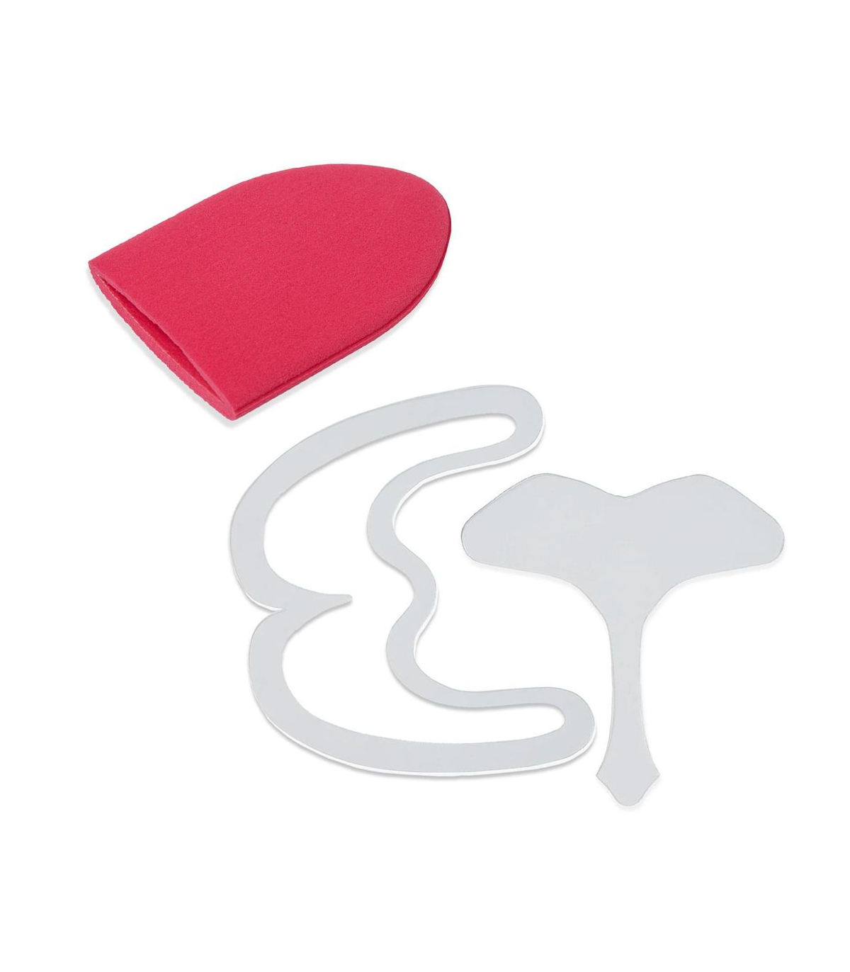 The Bronzie Contour Stencil Set can be used with make-up or fake tan to get the perfect contour shape on your cheekbones, jawline and nose. Simply place the stencil on your face and apply your chosen product using the innovative mini finger mitt.