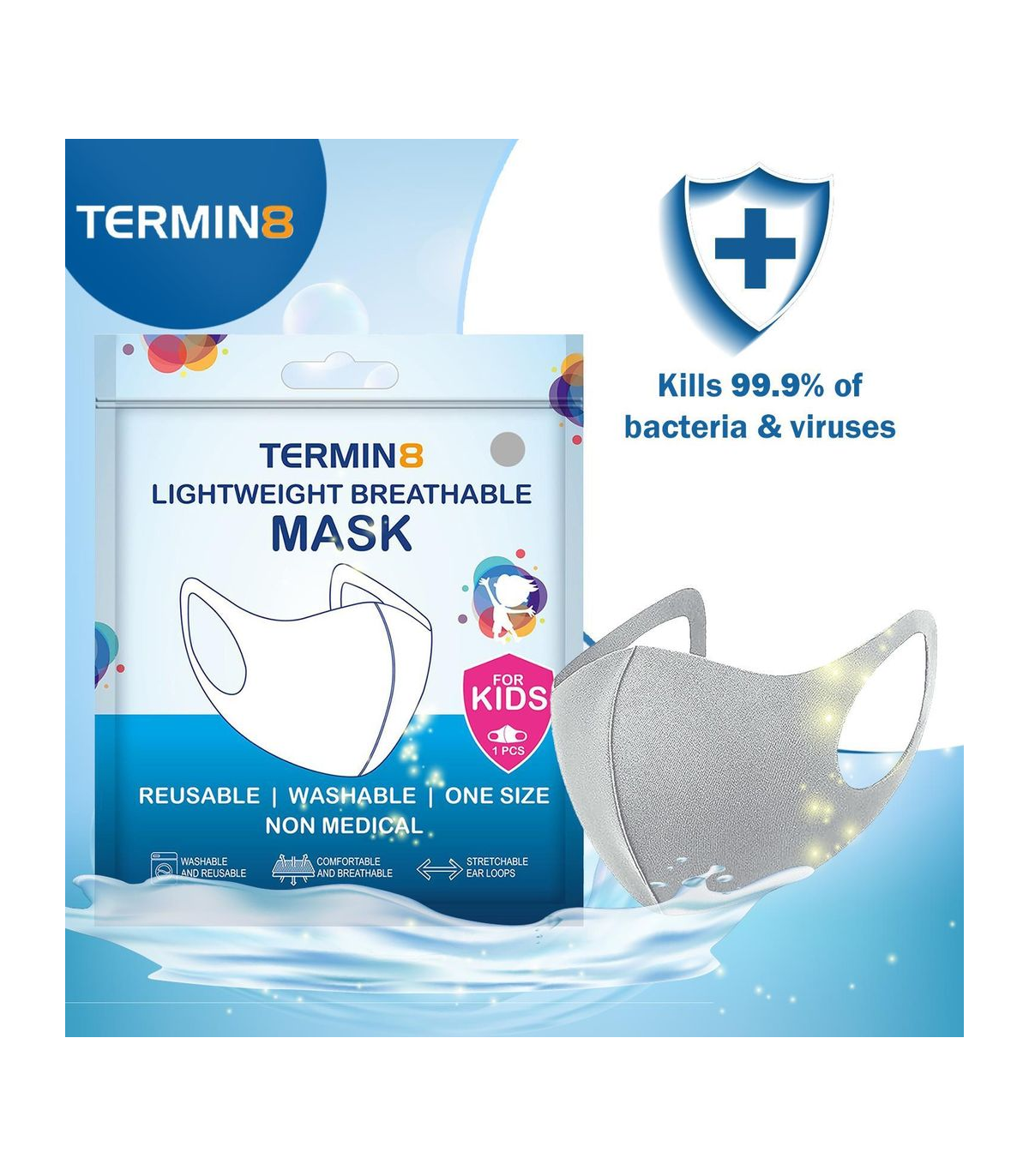 Termin8 Lightweight Breathable Reusable Face Mask for Kids, Grey